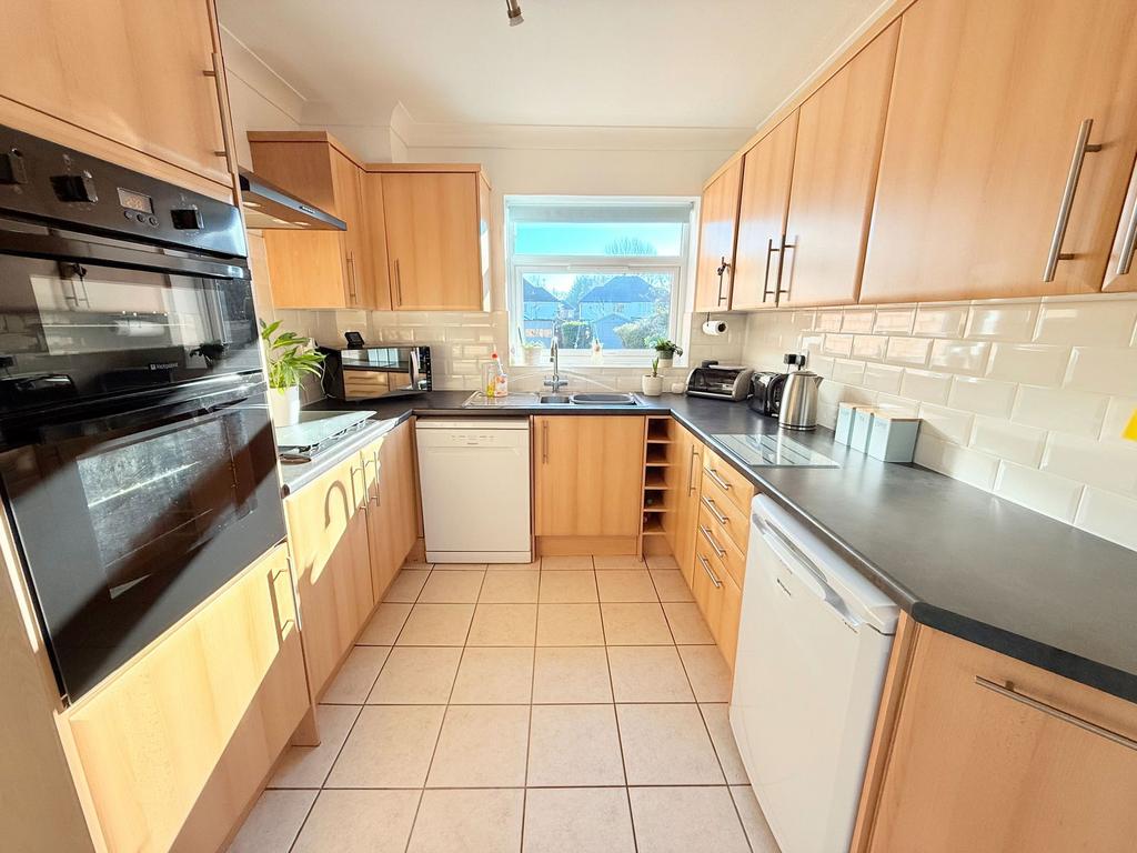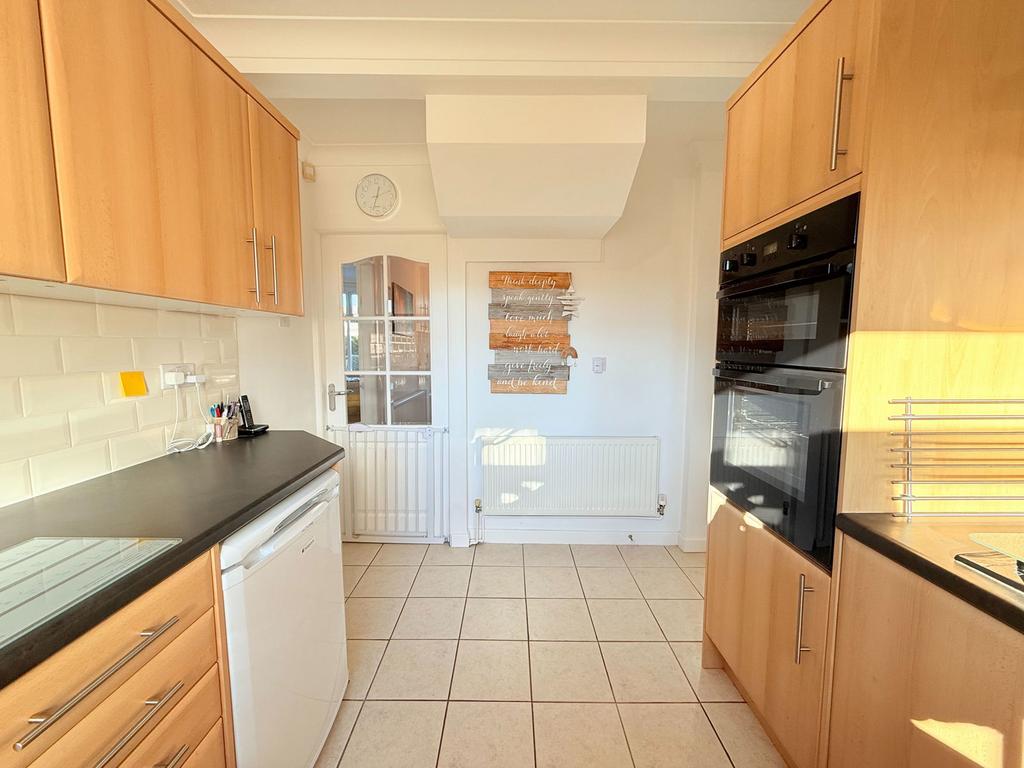 Being fitted with a range of wall, drawer and base units with complementary work surfaces over, sink and drainer unit with mixer tap, four ring gas hob with extractor canopy over. Eye level electric oven and grill, space and plumbing for dishwasher, metro tiling to splash prone areas, tiled flooring, radiator, ceiling light point, double glazed window to rear and a UPVC double glazed door leading out to