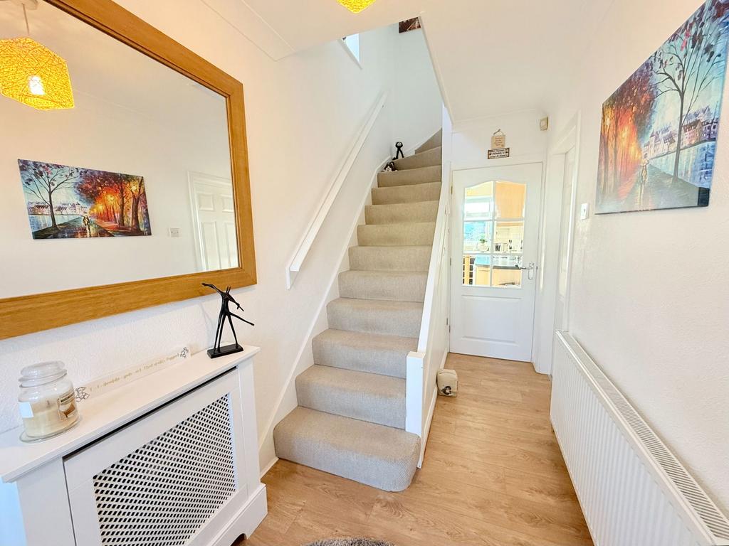 With an obscure double glazed window to front, wood effect flooring, ceiling light point, radiator, stairs leading to the first floor accommodation with useful under-stairs storage cupboard and doors leading off to