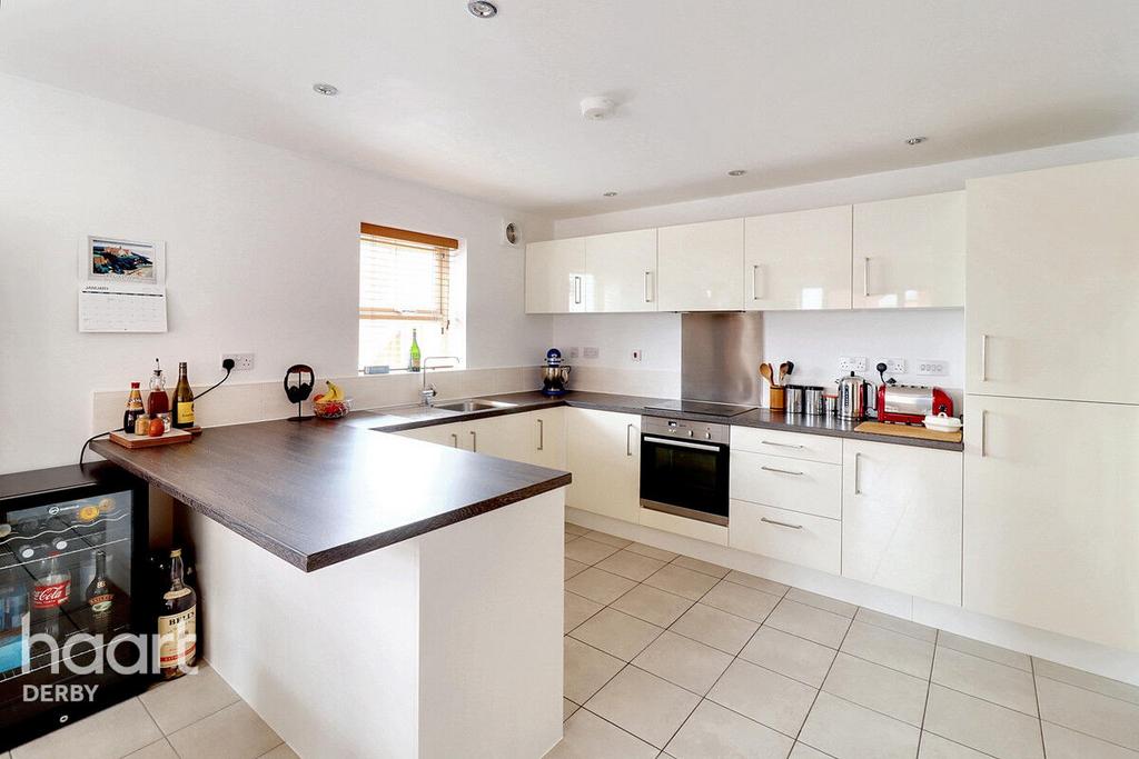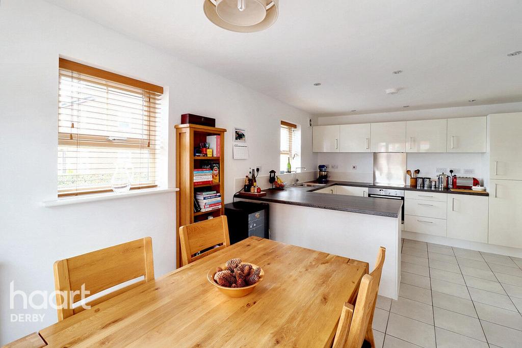 Comprising a comprehensive range of wall and base units incorporating work surfaces with an inset sink the kitchen is centred around a central breakfast bar the appliances are included such as fridge freezer I Neff integral oven and an inset hub the dining area has two double glazed windows to the front and side elevation an then door leading to the utility area.
