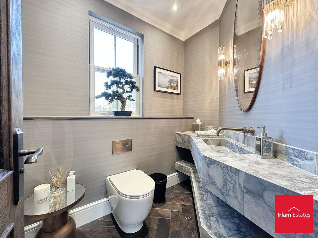 Nestled amidst the scenic elegance of Worsley Golf Course and in close proximity to the esteemed Broadoak School, this distinguished residence presents a rare opportunity to acquire an exemplary home of unparallelled quality and refined sophistication.