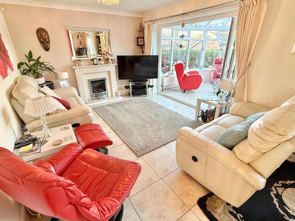 Living/Dining Room - 7.77m x 3.30m (25'6 x 10'10) - Spacious reception room featuring a coal effect living flame gas fire and surround. Tiled floor. Double glazed bi folding doors to the conservatory. Ceiling coving. The dining area has ample space for a dining table and chairs. Double glazed French doors to the garden. Contemporary radiator. Double doors opening to the breakfast kitchen.