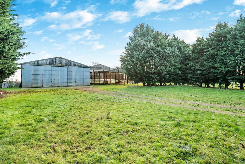 Outside - The property currently has access via a picturesque country lane, leading through an open field down to the barn building. This peaceful, rural atmosphere sets the tone for a retreat, complete with a sweeping track down to the property's distinctive steel frame barn.