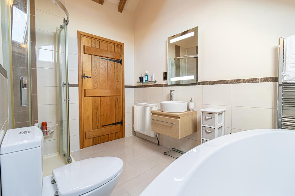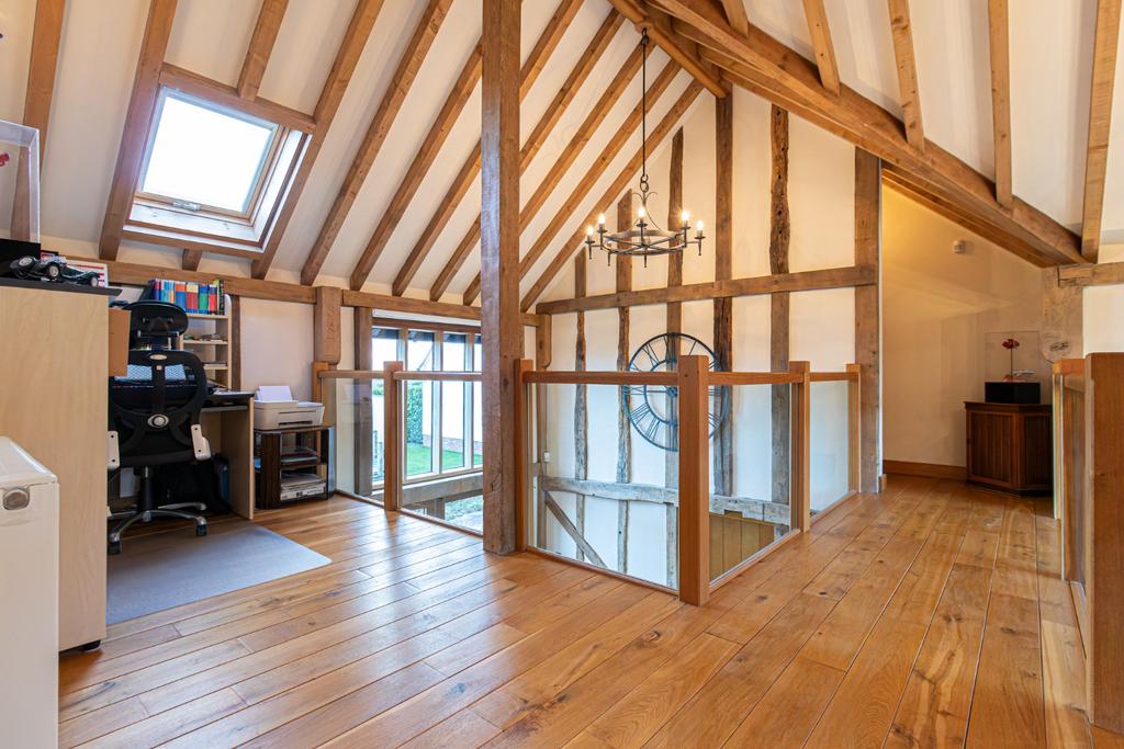 Navigating upstairs via the beautiful oak staircase, you will find the versatile galleried landing area, which features delightful wood flooring and is currently being used as an office space, which is perfect for those who work from home. Arranged around the central landing are three comfortable-sized bedrooms and a family bathroom. Bedroom 1, the master, is a spacious double bedroom which enjoys fantastic field views. Bedroom 2 is a delightful double room, which benefits from a neatly appointed ensuite shower room, which comprises a corner shower and a combination vanity unit with wash basin and WC. Bedroom 3 is a smaller single room that overlooks the rear garden and neighbouring fields. Completing the first floor accommodation is the stunning family bathroom, which is appointed with both a stylish free-standing bath and corner shower along with a wall-hung wash basin with vanity unit and WC.