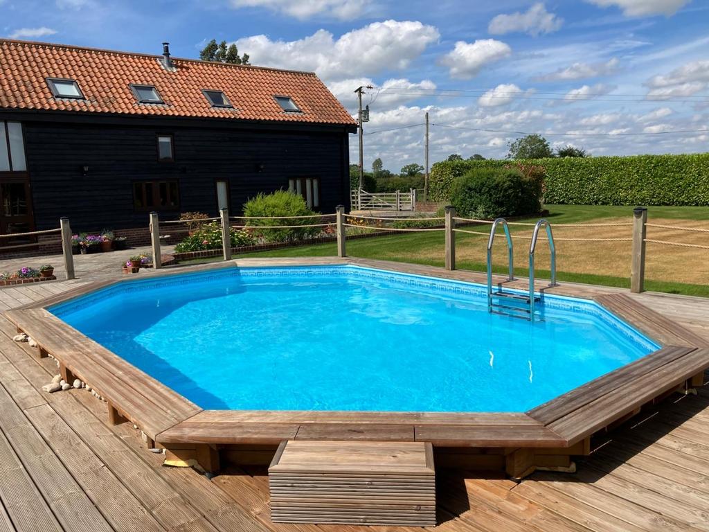 The gardens have been meticulously maintained with large areas of lawn, boarded with hedges and features several mature trees. There is also an attractive patio area which extends from the rear and side of the property, which is a great place to relax in the sun. Leading off the patio is a raised decked area which features an inviting swimming pool and summer house, with power connected, which is fantastic for entertaining in the summer. The pool is also heated via its own air-source heat pump.