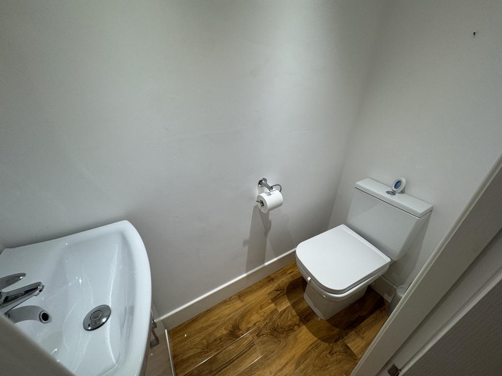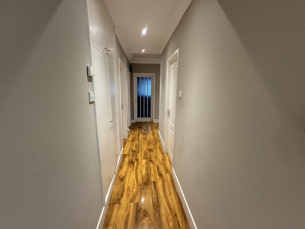L- Shaped Entrance Hallway. UPVC Double glazed door to side, gas central heated radiator, storage cupboard, access to loft via pull down ladder, wood laminate flooring.