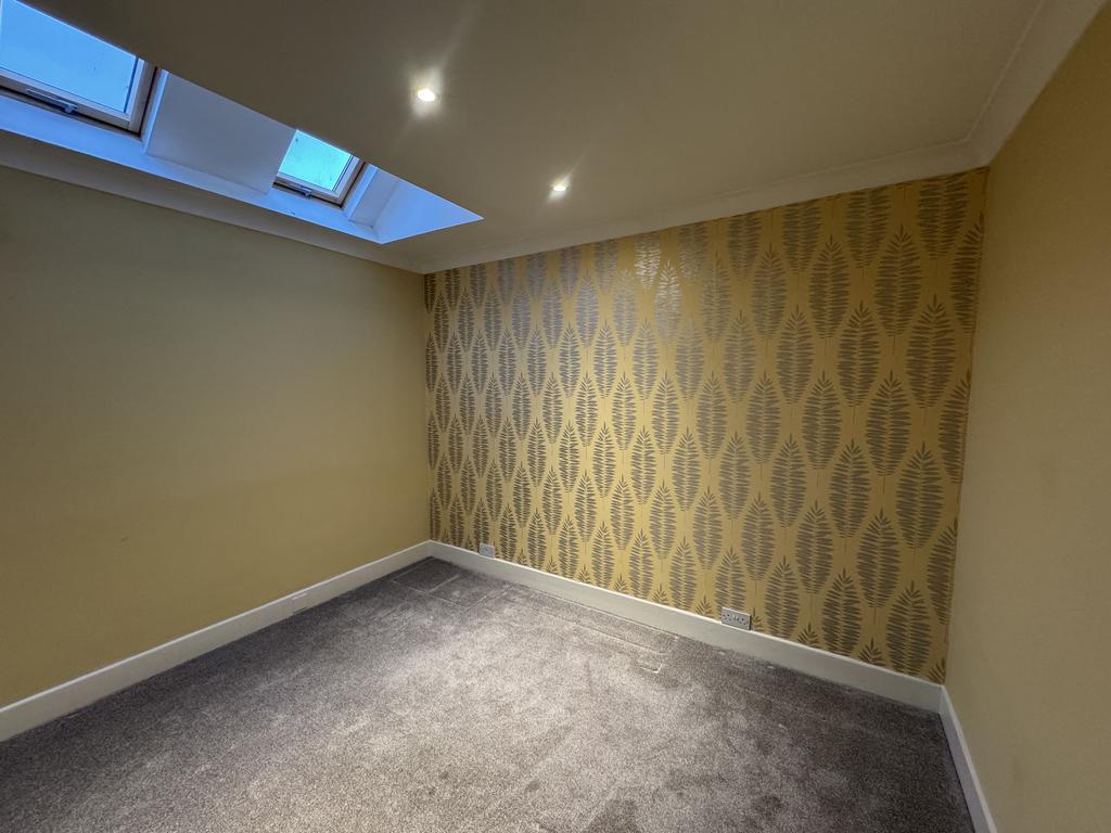 Bedroom 2. 3.64m x 3.33m, 2 x Velux Double glazed window to rear, gas central heated radiator.