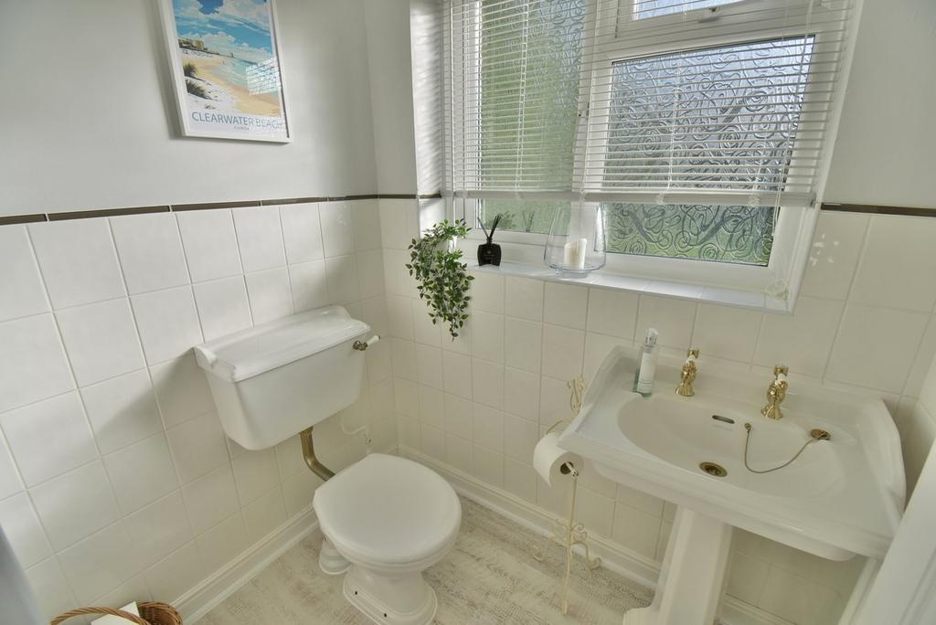 • Bathroom – Matching white suite comprising panel bath, WC and wash hand basin. Karndean flooring, double glazed window