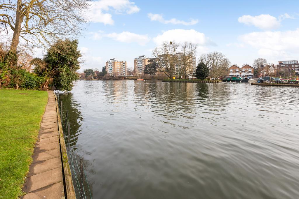 A 2nd and 3rd floor 3 bedroom duplex apartment offering some 866 sq feet of accommodation, excluding the garage. Originally 2 large bedrooms, now reconfigured as three bedrooms - please see floor plan. Balcony (west facing). Delightful and extensive communal gardens leading down to the mainstream River Thames. Garage (in separate block). Further, unallocated off street parking. EPC: C. Council Tax Band: E (£2,899.19 per annum for 2025/2026). Share of Freehold. Lease length: 931 years unexpired. Service charge: £2350 per annum. No chain. Sole Agents.