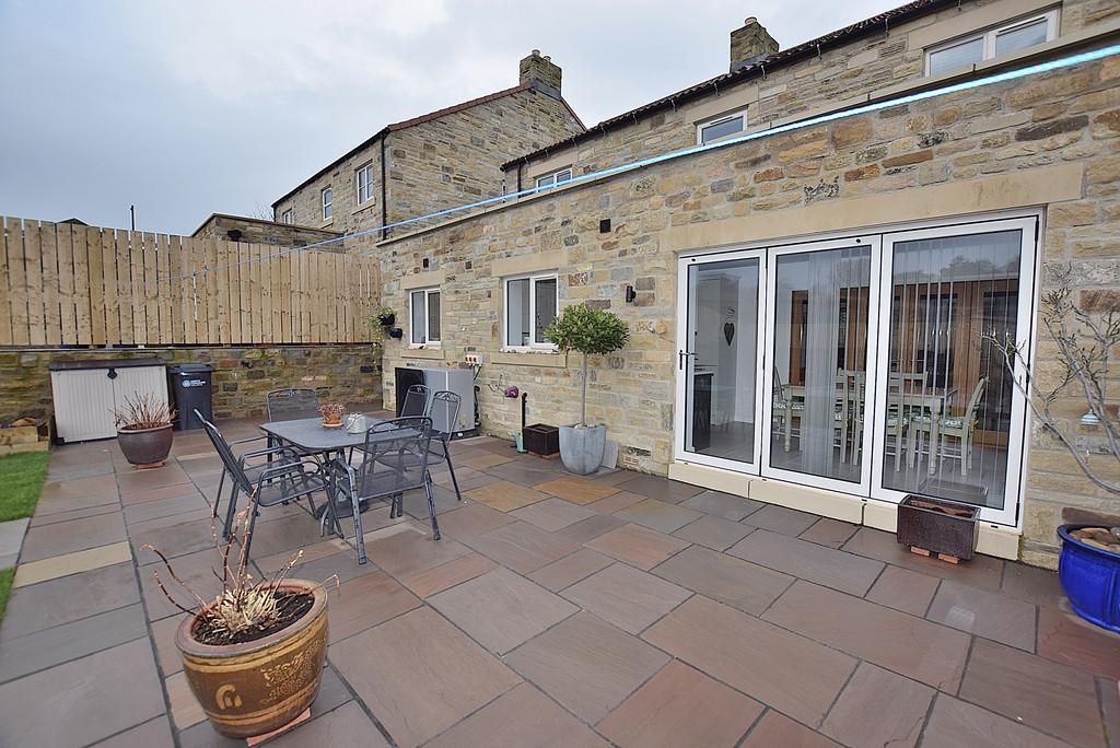 The generous South facing garden enjoys the sun throughout the day and has an open aspect. There is a large paved seating area, a lawn, raised planters and a timber shed.