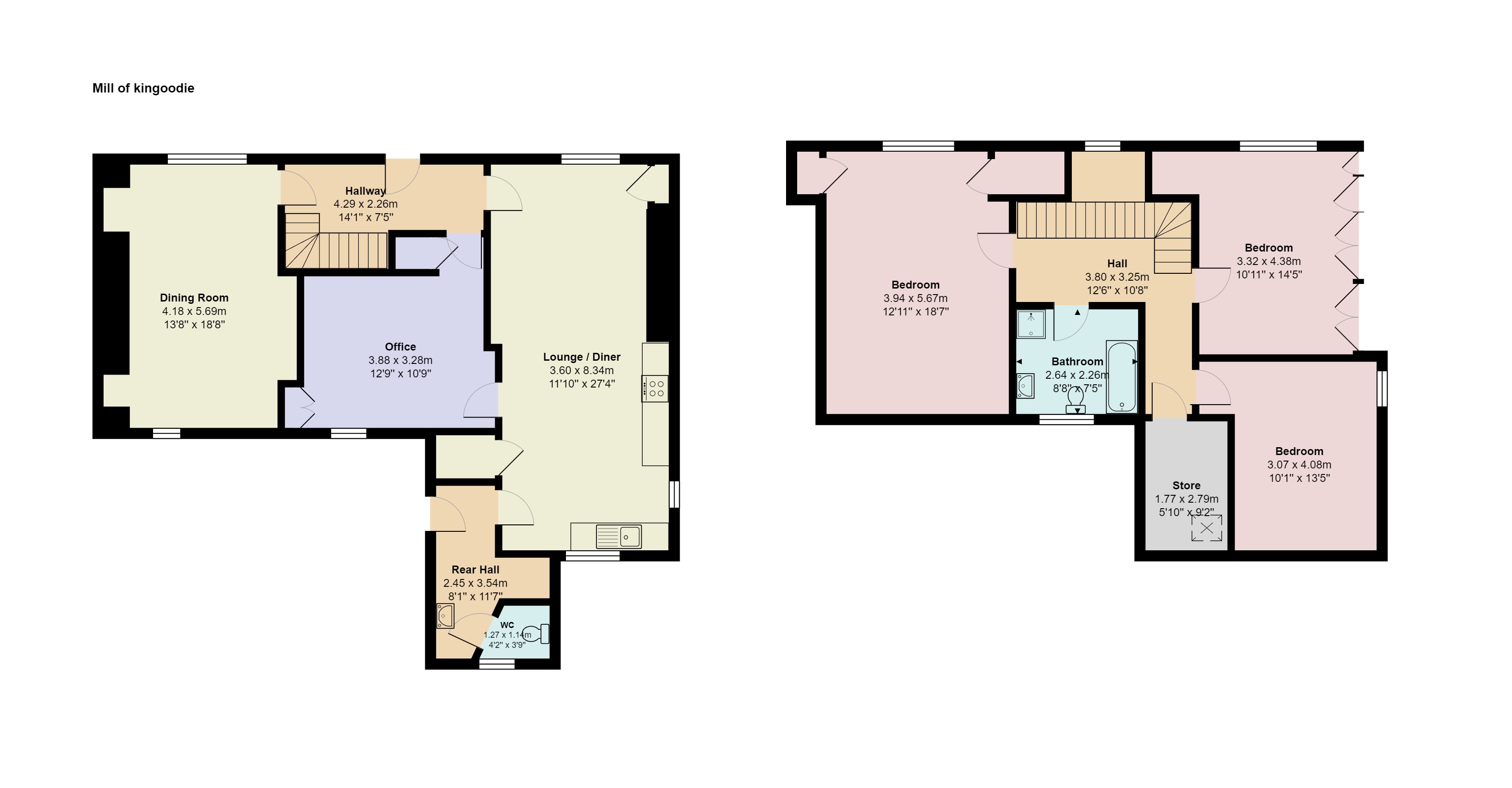 Mill of Kingoodie farmhouse is an impressive traditional three/four bedroom stone and slate Aberdeenshire farmhouse located to the west of the farm buildings and screened and sheltered with woodland to the west The property is modern and well-presented having been maintained in very good condition by the present owners.