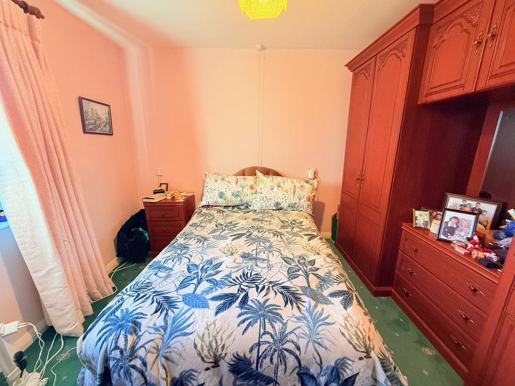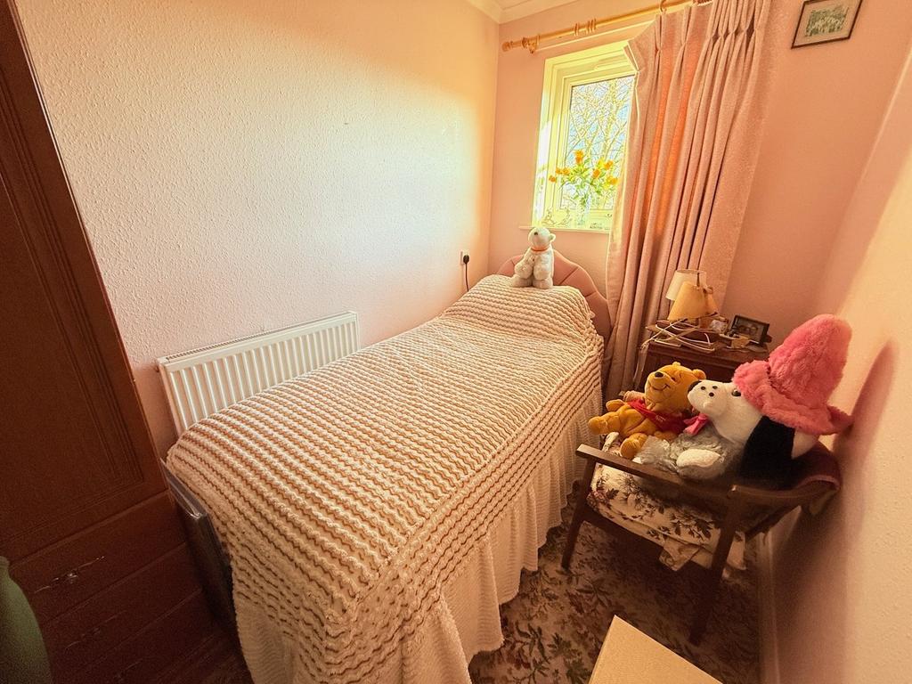 Double glazed windows to the rear with views across the playing fields. Radiator and built in cupboard. Electric fire set on a wooden fireplace.