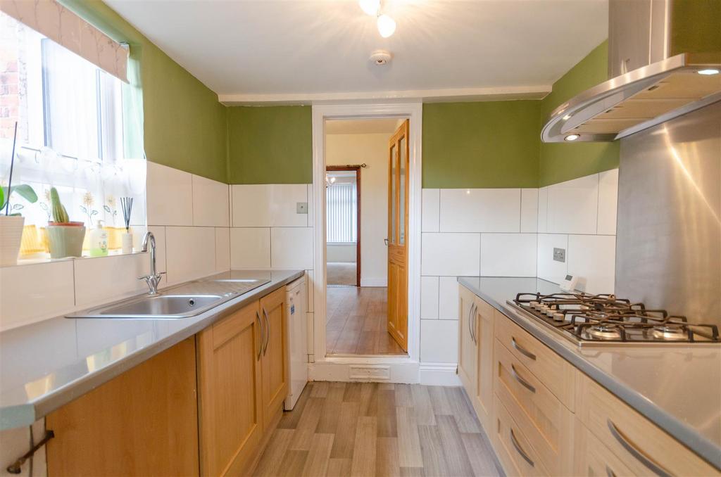 Kitchen - 3m x 2.4m (9'10" x 7'10") - With newly fitted modern units to the base and walls with a stainless steel sink and drainer unit, integrated electric oven and microwave, plumbing for an automatic washing machine, integrated fridge freezer, newly fitted wall mounted gas fired combination boiler, laminate flooring, ceiling light, uPVC window and a glazed door to the rear entrance lobby.