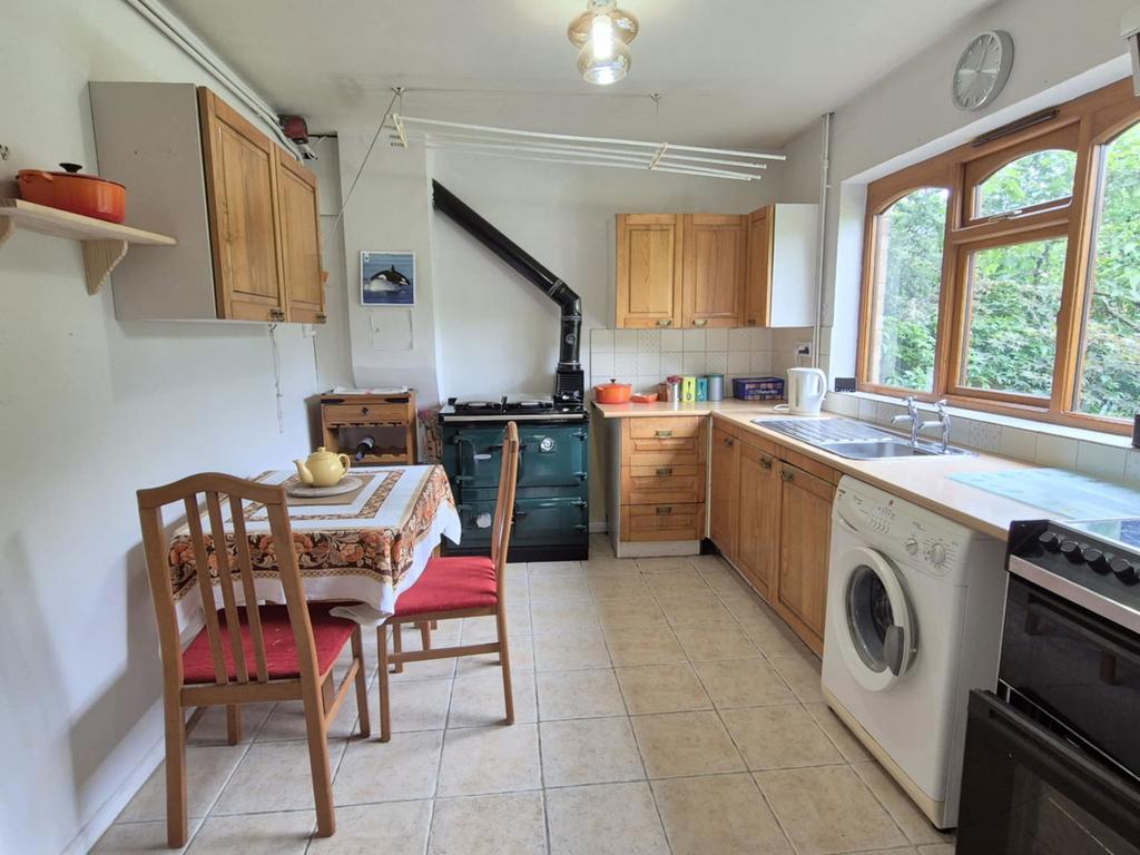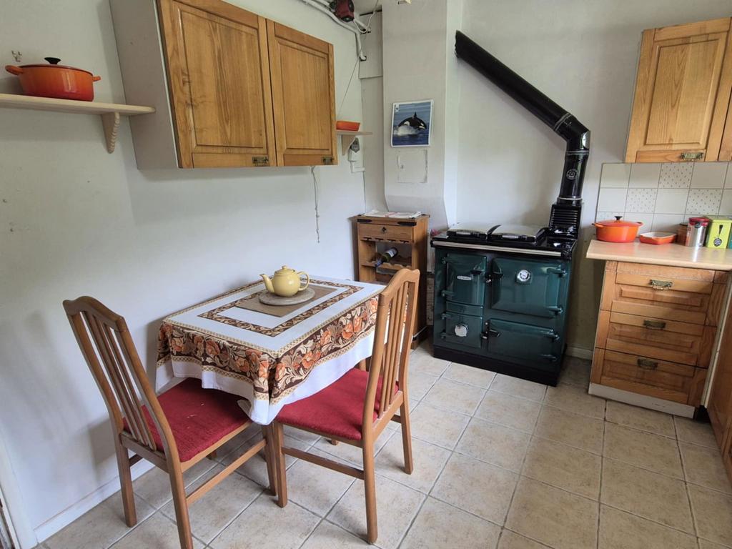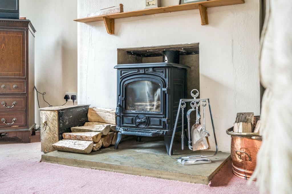 Upon entering the property, there is an entrance hall with downstairs WC and a useful storage cupboard under the stairs. The sitting room is a well proportioned room with ample natural light due to the large window to the front and a small log burner set within the fireplace. The kitchen has a private aspect overlooking the rear garden and features an attractive solid fuel and wood Rayburn which can provide hot water, cooking facilities and can also provide heating through the radiators to other rooms. The owner of the property has advised us that this system also has the potential to be linked up to solar panels if required. In addition, this system is backed up with an electric immersion and storage heaters. The kitchen benefits a good sized storage cupboard/pantry. A door leads through to the side porch giving access to a good sized utility room and a further storage cupboard, formerly the coal cupboard. An external door leads to the side of the property, giving access to the front and rear gardens.