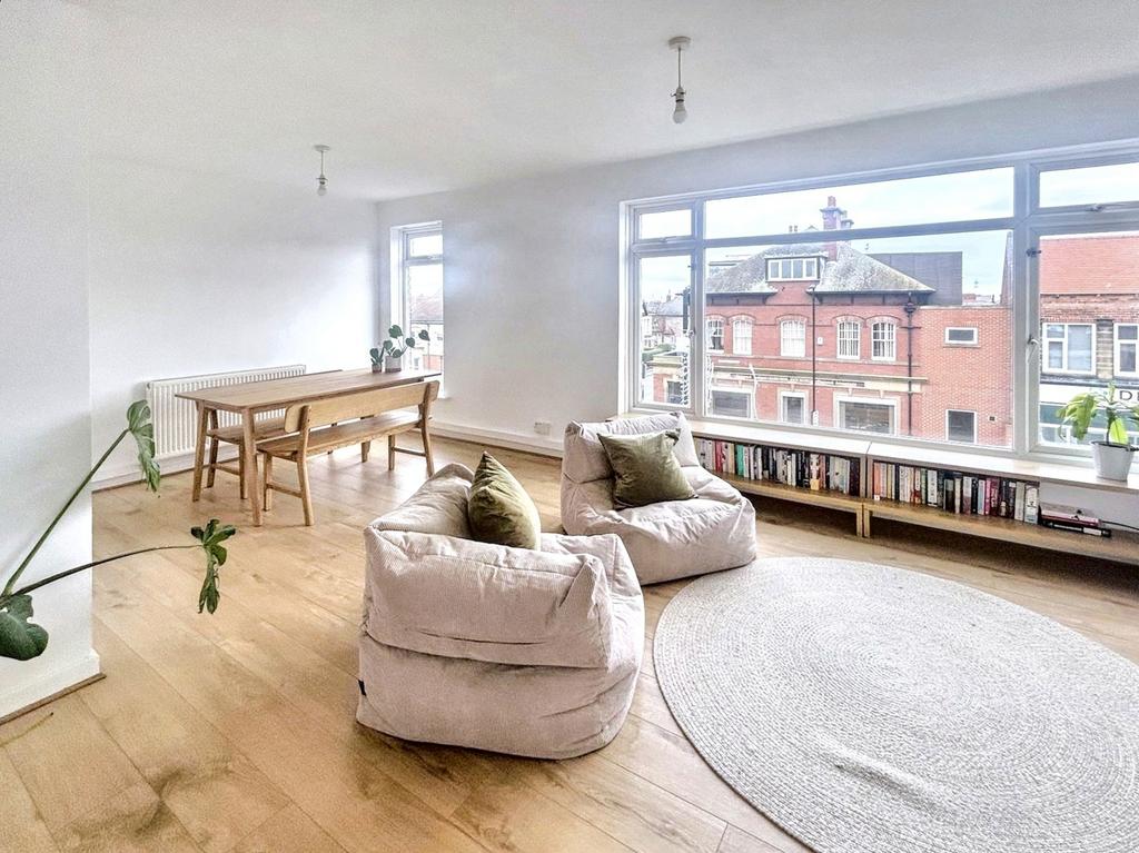 Amazing large lounge with double glazed floor to ceiling windows, radiators, shelving, insulating laminate floor.