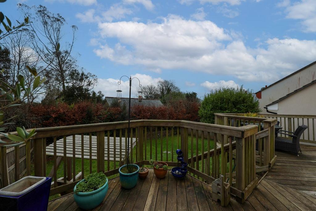 At the front of the property, you'll find a sloping lawned area and access to a spacious tarmac driveway with parking for at least four cars. This leads to a double garage with a pitched roof. To the rear, there is a large south-facing garden that offers a high level of privacy. The sunny aspect is further enhanced by a raised balcony, accessible from both the kitchen/breakfast room and the living room, which overlooks the garden.