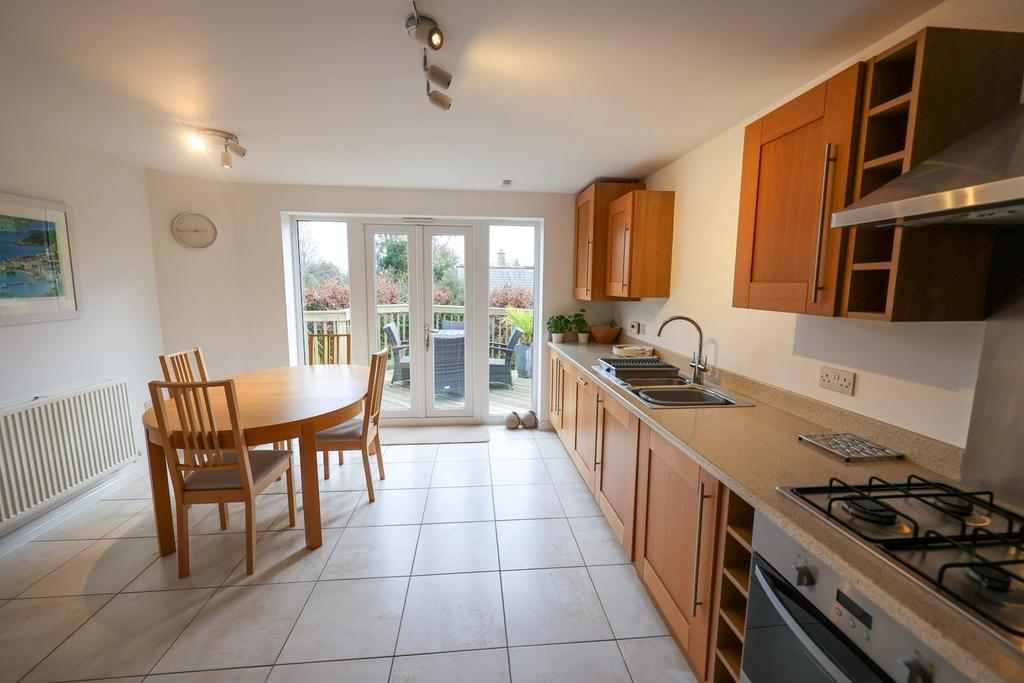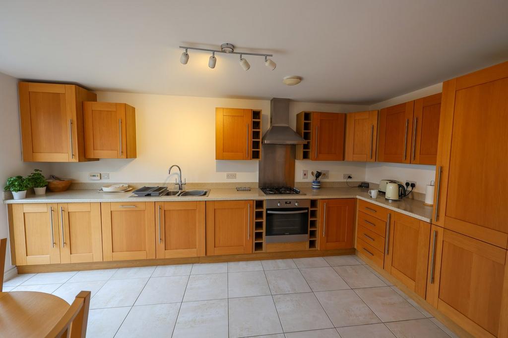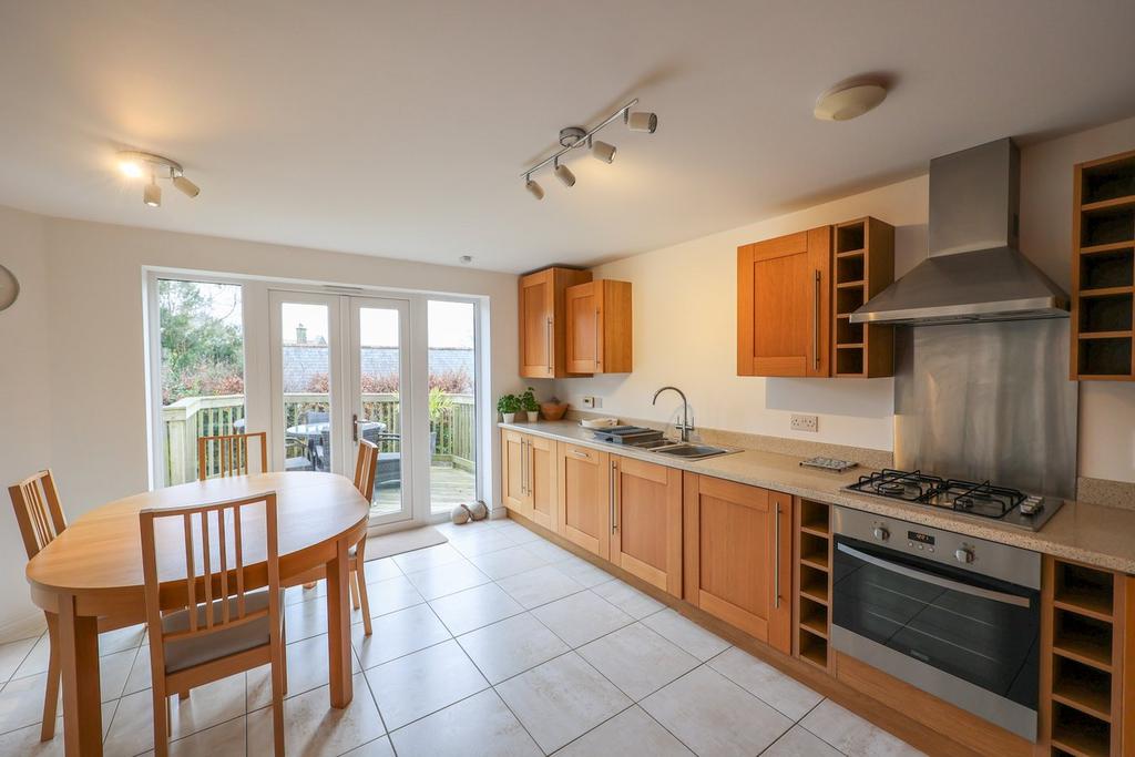 4.82m x 3.87m (15' 10" x 12' 8") A delightful room with a ceramic tiled floor and an excellent range of light oak-fronted units, complete with built-in appliances. The space is enhanced by French doors with a glazed side screen, leading out to a raised timber-decked balcony. It also features a built-in fridge and freezer, a built-in oven with a gas hob and extractor canopy, a built-in dishwasher, central heating controls, and a Logic wall-mounted gas-fired central heating boiler.