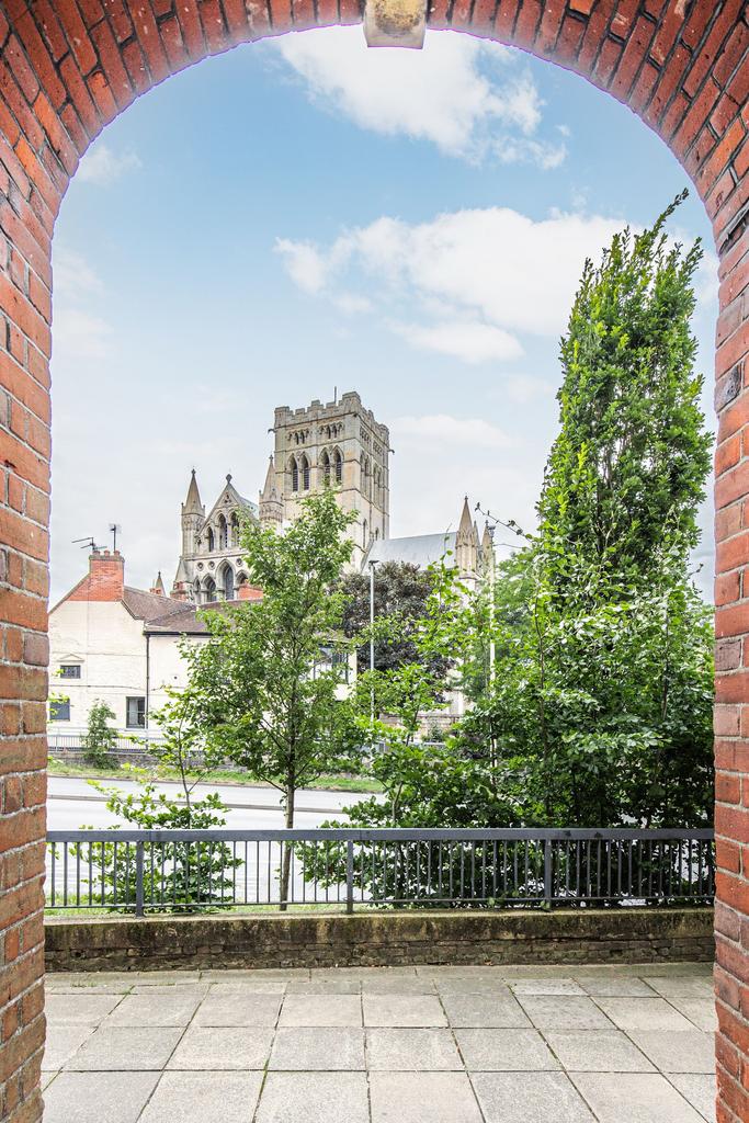 The principal bedroom boasts remarkable views of the Roman Catholic Cathedral and features a contemporary en-suite bathroom. A second bedroom and a separate bathroom provide additional comfort and privacy.