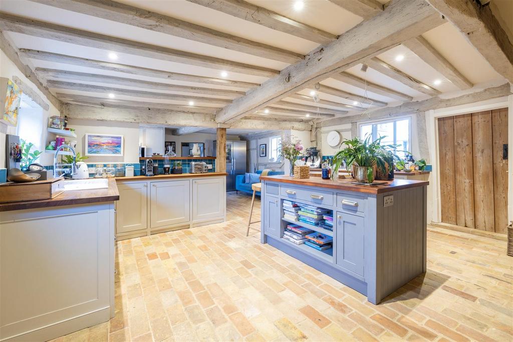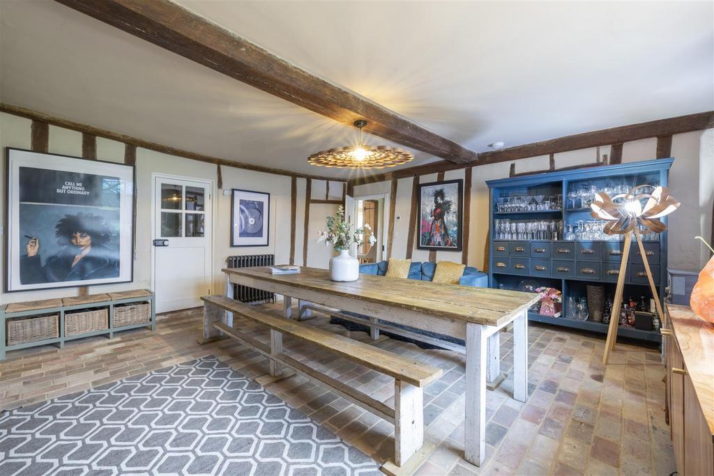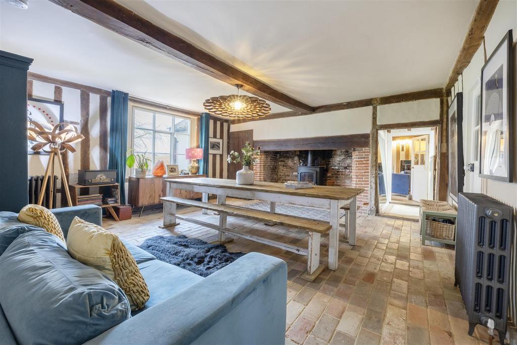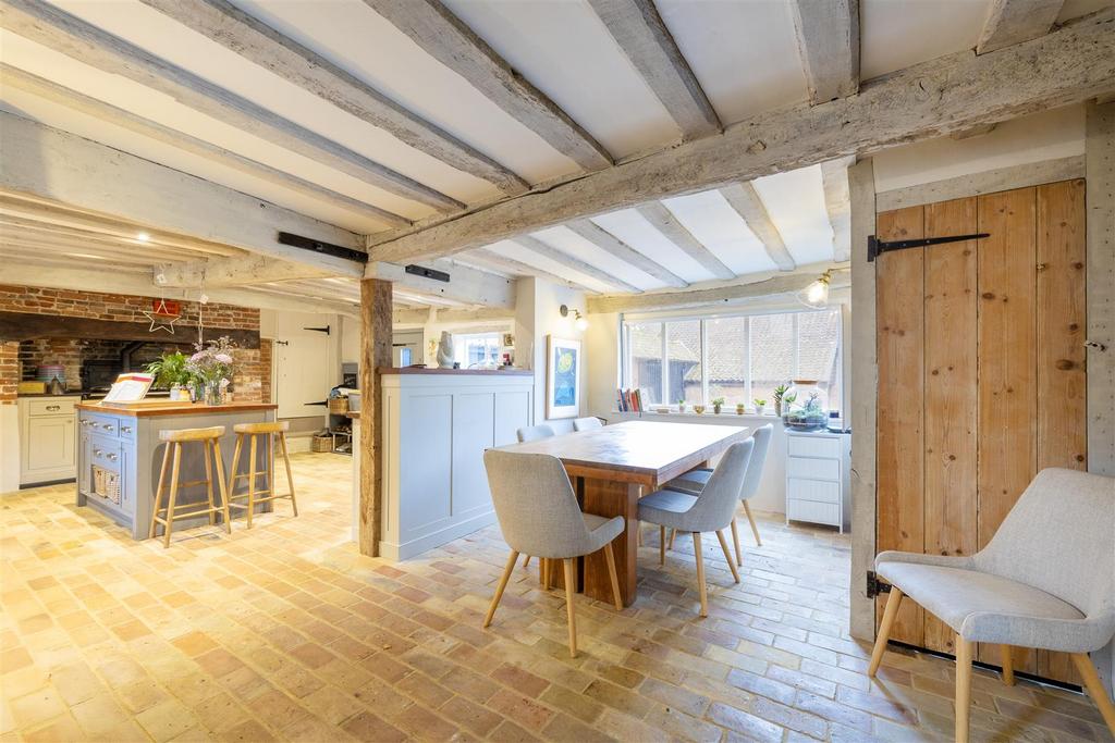 Upon entering the property through the side access door, you will step into the kitchen. This room offers dual aspect views and is both functional for modern day living with its central island and modern units. This room retains its charm with an oil-fired Aga and exposed timber beams. This space, alongside the breakfast room/dining area provides the ideal space for family meals and lively entertaining. Off the kitchen you will find a utility room and a door leading to the garden. Continuing through the property you will find three additional reception rooms. The sitting room boasts an impressive newly installed Charnwood wood burner as the main focal point of the room alongside double doors that lead you out to the patio. In addition to this, the dining room, also with a newly installed wood burner, is the ideal space to host.