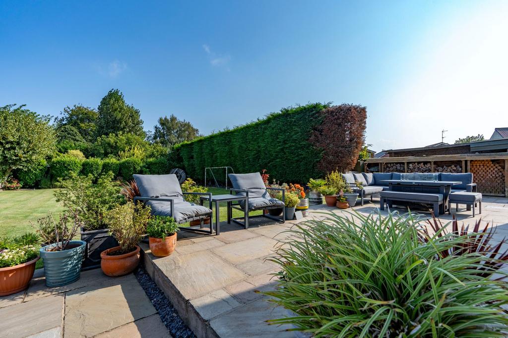Outside, The Old Exchange sits on a plot just under half an acre (STMS). The expansive garden, patio area, and open lawns offer endless opportunities for outdoor leisure and relaxation. The property also includes a secure frontage with wall and railings, two electric gates, a large garage and ample off-road gravel parking, perfect for accommodating family and guests.