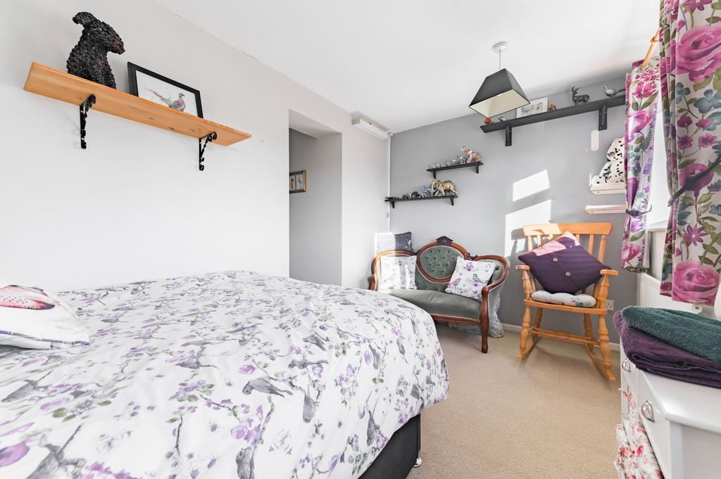 The ground floor is beautifully designed, with a spacious sitting room featuring a log-burning stove, an inviting kitchen/breakfast room perfect for family gatherings, and a dining room with French doors that open to a lovely garden. The recently installed, contemporary bathroom is elegantly finished with a three-piece suite, including a bath and overhead shower.