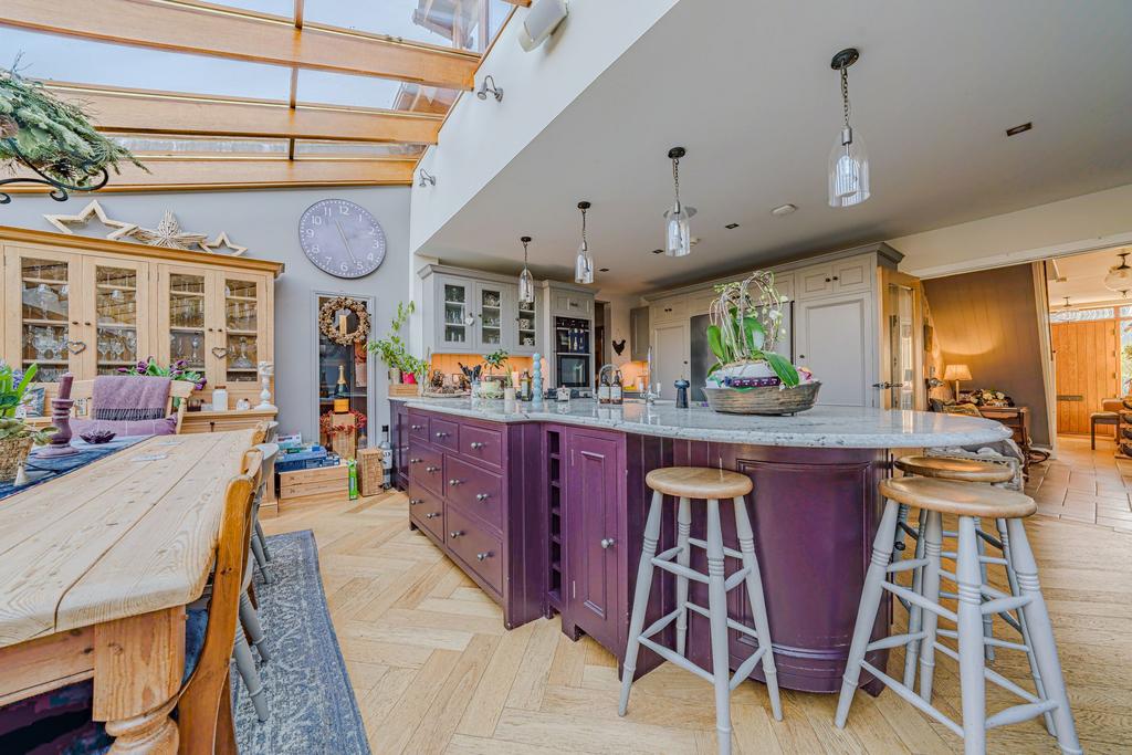 Quay View is a substantial and gracious four double bedroom architecturally designed detached residence situated in a prestigious location within easy walking distance of the center of the historic town of Christchurch with its thriving High Street, Priory and Quay and offering views over Christchurch Quay and the River Stour. The popular town of Bournemouth with its seven miles of blue flag award winning beaches, is located approximately three miles away, Poole Harbour is approximately five miles away with its numerous yacht clubs and marinas, the New Forest National Park is a leisurely drive away and London can be reached in under two hours from Christchurch Mainline Railway Station. Quay View offers an impressive 2,541 Sq Ft (236 Sq M) of sophisticated and elegant living accommodation comprising of to the ground floor a commanding ceramic stone floored entrance hallway with doors off leading to the superbly appointed open plan living area with engineered oak herringbone flooring throughout, the hand painted Neptune custom built kitchen offers an extensive range of wall and base units, with granite work surfaces, a full range of high spec appliances including Neff double ovens, hob and extraction, Leibherr fridge and freezer, Franke sinks with boiling water tap and generous dining island a door leads to the substantial butler’s pantry featuring further bespoke cabinetry and the Aga ER3 Electric stove a door leads to the cellar/cold storage area with further door to the gardens, access is also afforded to the substantial fully fitted separate utility room.