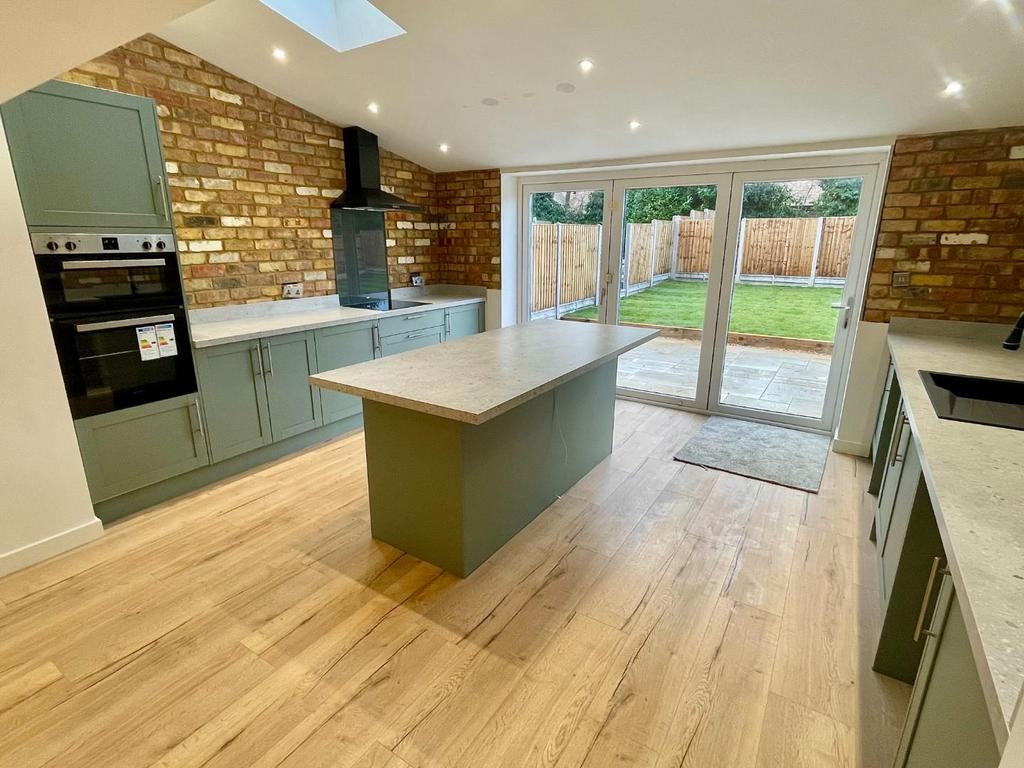 A fully refurbished and extended three bedroom house with ensuite shower room, situated on a larger than average westerly facing plot, in a cul-de-sac position, within the sought after village of Spratton. The property has been completely re-wired and re-plastered throughout with replacement uPVC double glazing and a new gas radiator central heating system. Offered with full vacant possession, accommodation comprises entrance hall with wood effect floor and under stairs storage, formal sitting room, open plan kitchen/breakfast/family/dining room with vaulted ceiling incorporating sky lights, a centre isle, exposed brickwork to walls and bi-folding doors to the rear garden, cloakroom/W.C, first floor landing, master bedroom with ensuite shower room and double shower cubicle, two further bedroom and a four-piece family bathroom with shower cubicle. Outside, to the front is a newly laid block paved drive providing off road parking with an additional block paved area to the side providing further parking. The private, westerly facing landscaped rear garden is approximately 75ft in depth and laid mainly to lawn with large patio area and fully enclosed. Spratton village is situated 7 miles north of Northampton and 13 miles south of the pretty market town of Market Harborough, nestled amongst stunning countryside. Spratton has many amenities including the popular Kings Head Public House/restaurant, convenience store, hairdresser, beauty salon and recreation ground. There is a pretty church, village hall and schooling includes a primary school and the highly regarded Spratton Hall School. The village also falls within the credible Guilsborough school catchment area. More amenities are at hand in the neighbouring village of Brixworth less than 2.5 miles away and Kingsthorpe just 6 miles away where superstores are at hand. Major road networks include the M1 and A14. Railways can be found in Long Buckby and Northampton. (A/1031/L)