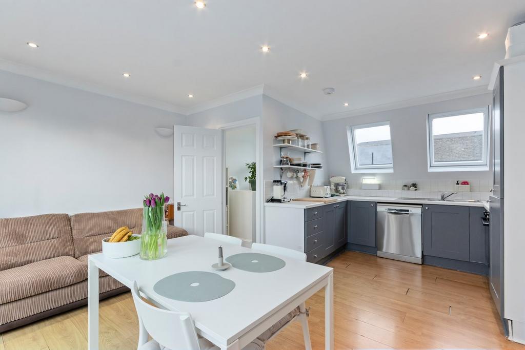 Comprises private front door entrance, stairs to the first-floor hallway landing, 17'5 x 14'11 reception room with open plan kitchen, reception room two, two/three bedrooms, two bathrooms (one ensuite), balcony. No chain.