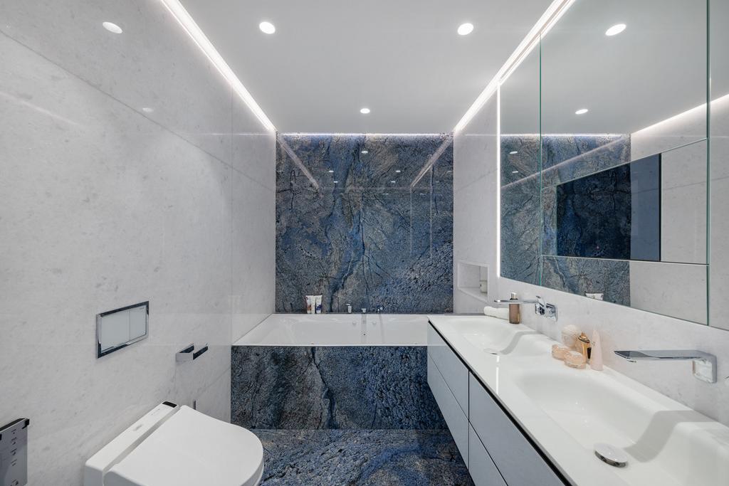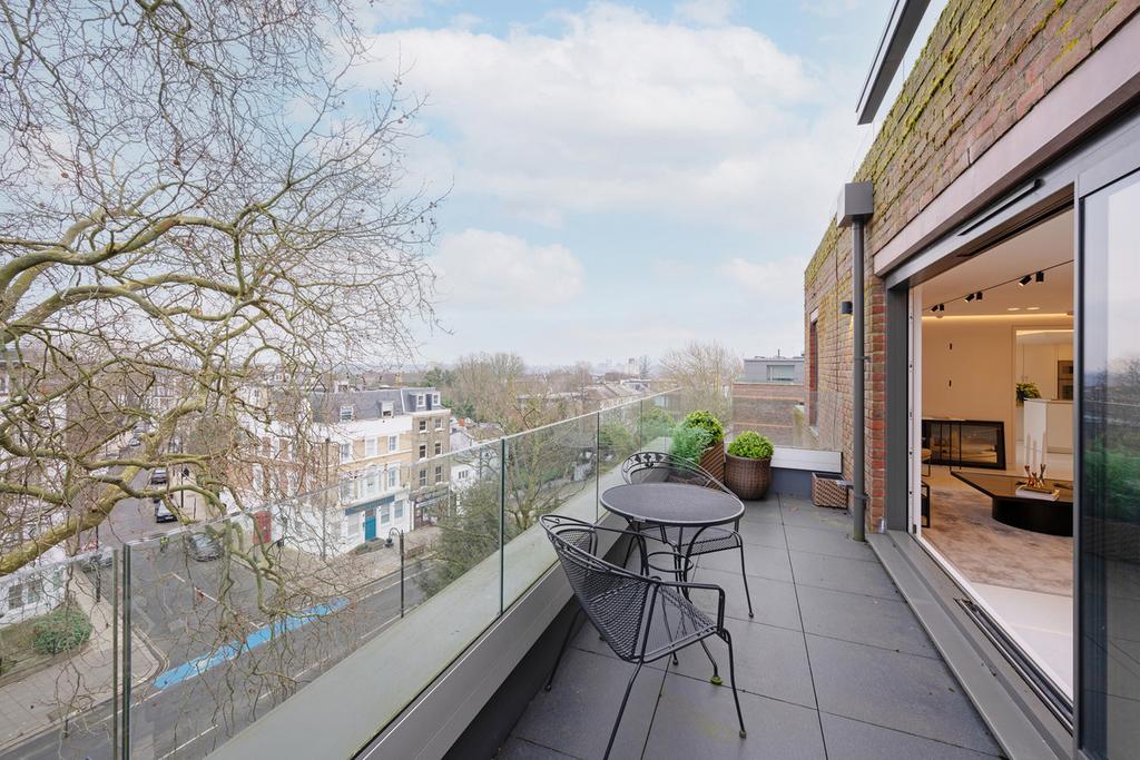 An immaculately presented, three-bedroom, duplex penthouse of circa 4,000 sq ft / 377 sq m with direct lift access, terraces, balconies and 2 secure parking spaces set behind gates in the heart of Belsize Park. The Penthouse has been meticulously refurbished with bespoke architectural lighting features, smart technology and privacy glass. The lower level provides a reception room, dining room, a very large Poggenpohl kitchen/breakfast room with a 70 bottle wine fridge, custom onyx feature wall and double appliances. In addition, there is second bedroom suite, utility room, guest cloakroom and 2 balconies. The upper level features an impressive principal suite comprising a large bedroom, adjoining dressing room and en-suite bathroom as well as a 23ft/7m study. Floor to ceiling windows span the full length of the suite with 180 degree south easterly views of the skyline of the City Of London. There are also benefits of advanced security features throughout and full access to a communal garden.