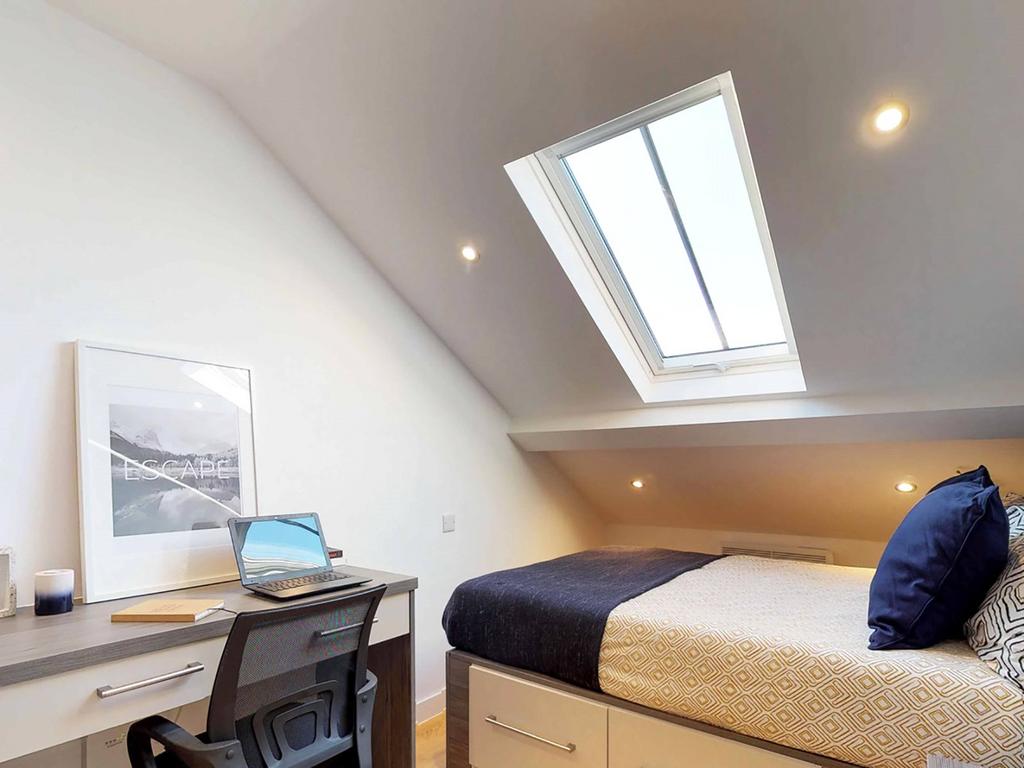 Your modern kitchen is equipped with a high-spec oven and hob, fridge/freezer, and washer-dryer. A cosy living area with a smart TV, sofa and coffee table. Wind down in the perfectly designed bedroom with a large bed, beside table and underbed storage, and also an en-suite shower room. The bedroom is designed with all you need, including a double bed, bedside table, wardrobe, study desk and chair. Don’t forget about the en-suite shower room, fully equipped with a heated towel rail and luxury shower, ideal for unwinding after a busy day.
