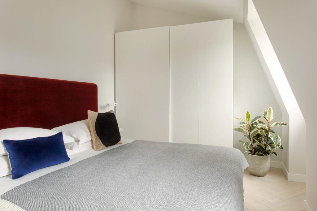 This stunning penthouse 3 bed, 2 bath apartment basks in light and benefits from a lovely planted terrace. The open plan kitchen and living space is designed to feel spacious but still cosy. Each of the bedrooms boast a super king bed, one of which has an ensuite with a bathtub with overhead shower. The spacious family bathroom has a bathtub with a rain shower.
