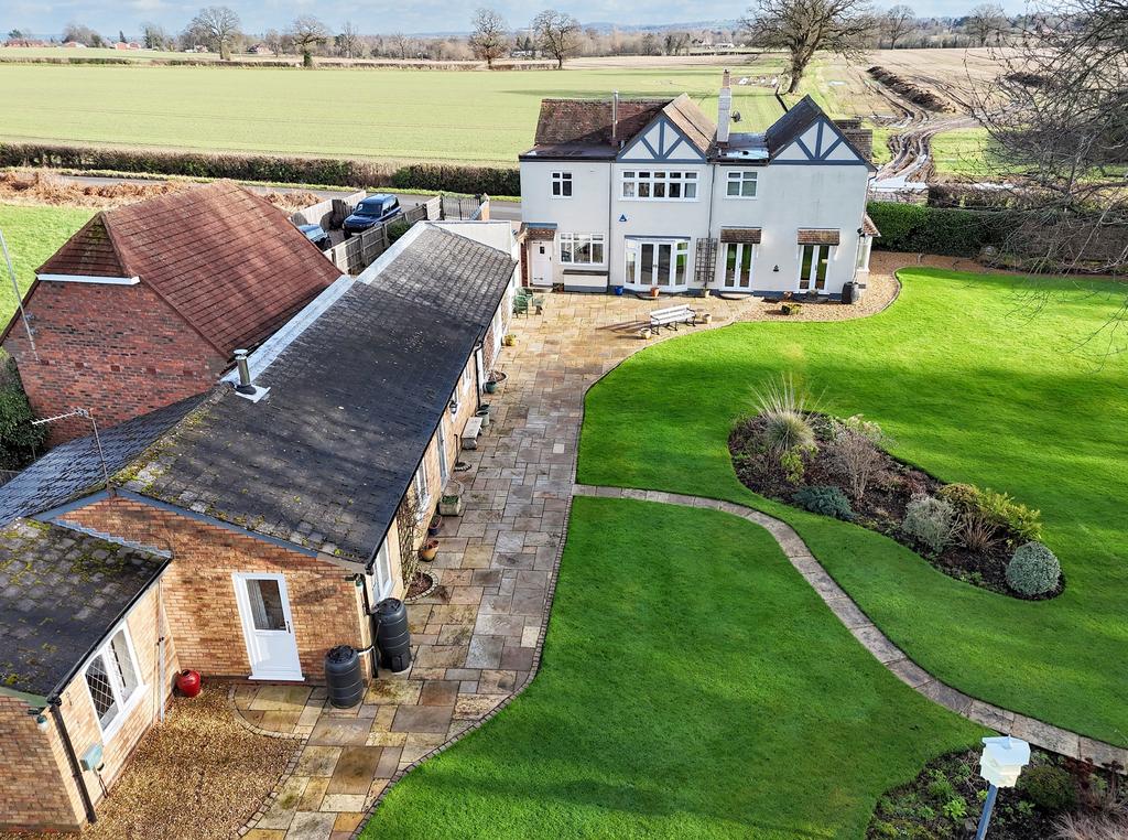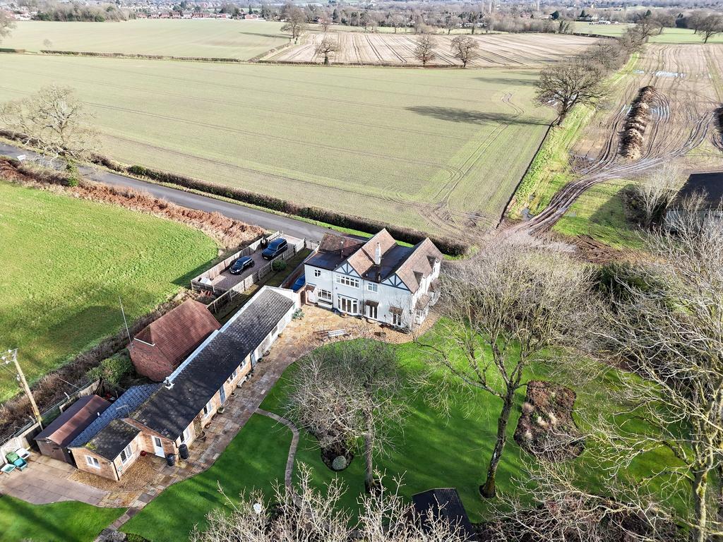 Situated in a rare and special location, on the border of Codsall & Tettenhall with breathtaking panoramic views over surrounding countryside & woodland, this individually designed detached family house is undoubtedly one of the finest examples of its type currently listed on the market! With no expense spared, the current owners have thoughtfully restyled over the years to retain the charm and appeal of a character property whilst creating tastefully appointed accommodation, with a number of characteristic & superior features throughout. With a huge floor area of approx. 3,598.6sq feet, the extremely spacious accommodation offers a most versatile interior, with viewing highly recommended to appreciate this unique & desirable family home. The first-class interior includes a large welcoming reception hall with a fitted cloakroom, front sitting room, separate dining room and a charming lounge with feature inglenook fireplace. Not only do the large reception rooms create an excellent layout for large families, but the rooms also all overlook the beautifully landscaped rear grounds. The ground floor also includes a breakfast kitchen which is fitted with a quality suite and a number of built in Bosch appliances with a useful utility/ laundry room adjacent. From the entrance hall, an L-Shaped staircase leads to the first-floor galleried landing where there are five bedrooms, all with built in wardrobes and four certainly double rooms. The two ensuite shower rooms and family bathroom are fitted with luxury suites. At the side of the house is a paved driveway that not only provides ample off-road parking but leads to the detached tandem garage. There is also an adjacent courtyard providing further gated off-road parking for several cars etc. A further exceptional feature is the self-contained annex lodge which has been designed to utilise the maximum space with dining kitchen, lounge with log burner stove, inner hall, double bedroom and bathroom. The comfortable space is ideal for aged relatives or family members requiring the support of being near to family whilst having their own independence. One of the most striking features of Keepers Cottage is the south facing fully stocked rear garden, sat in a plot of approx. 0.6acres. The grounds have been extensively landscaped to provide a most stunning setting whilst maintaining the maximum privacy, perfect for hosting summer garden parties and of course enjoying the unique 360° panoramic views. Although enjoying a secluded countryside position, Keepers Cottage is still very convenient for the majority of amenities having Tettenhall, Codsall & Bilbrook all within easy reach. These include a wide range of facilities including excellent schools in both sectors, popular coffee shops, local shops, Tennis & Cricket Clubs, Golf Clubs and of course Tettenhall Green playing fields & pool. Bilbrook train station is also only 0.5 miles away, the city centre is less than 3 miles, and the M54 motorway is a short drive, perfect for commuting to Birmingham, Telford and other principal cities. Viewing is highly recommended to appreciate this most individual property, being a superb example of a first-class family home.