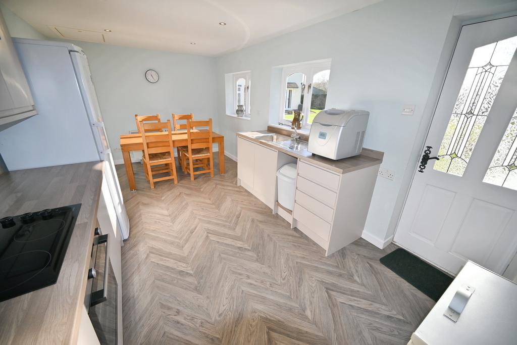 Keepers Lodge/Annex: Open Plan Dining Kitchen: 18’8’’ (5.69m) x 9’6’’ (2.90m) Fitted with a matching suite of contemporary gloss units comprising stainless steel single drainer sink unit with mixer tap, a range of base cupboards & drawers with matching suspended wall cupboards & laminate worktops, built in electric oven, built in combination microwave, 4- ring electric hob & stainless steel extractor hood over, storage heater, recessed ceiling spotlights, laminate effect flooring, hardwood glazed windows to rear with matching opaque door. Lounge: 17’7’’ (5.35m) x 10ft (3.04m) Log burner stove, storage heater, coved ceiling, glazed windows to rear and PVC double glazed door. Inner Hall: Coved ceiling, loft hatch and floor to ceiling built in wardrobes housing hot water tank. Bedroom: 13’2’’ (4.02m) x 9’11’’ (3.01m) Electric storage heater, coved ceiling and double-glazed window to rear with leaded glazed window to side. Bathroom: 7’1’’ (2.16m) x 5’7’’ (1.70m) Fitted with a white suite comprising panelled bath with electric shower & separate handheld spray, vanity unit with storage & recessed WC, electric panel heater, tiled walls, wall light points, coved ceiling, vinyl flooring and opaque window to side.