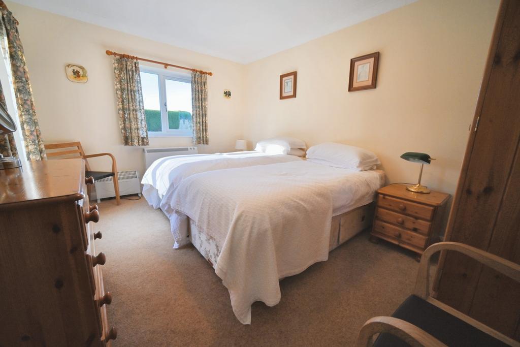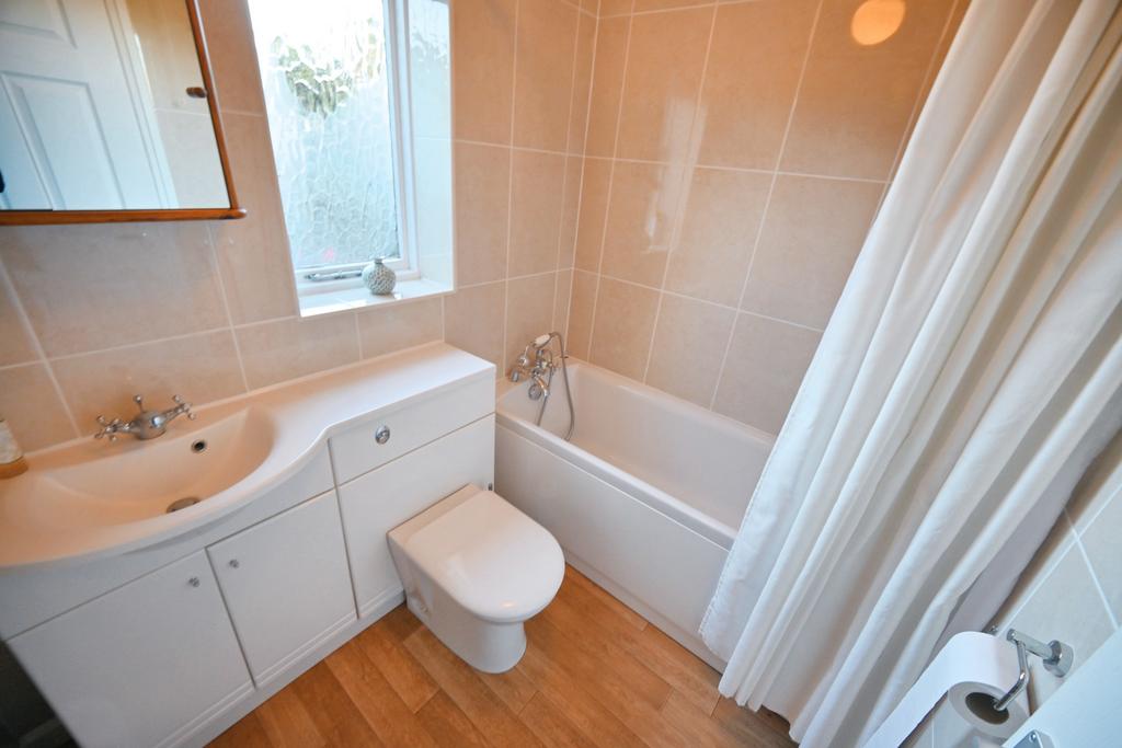 Bedroom Two: 13’3’’ (4.04m) x 11ft (3.36m) Built in full width wardrobes, radiator, recessed ceiling spotlights and double-glazed windows to front & side. Ensuite: Fitted with a white suite comprising corner shower enclosure, low level WC, vanity unit, chrome heated towel rail, part tiled walls, extractor fan, built in airing cupboard, vinyl flooring and double-glazed opaque window to side.