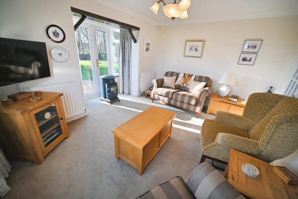 Living Room: 18’1’’ (5.50m) x 16ft (4.87m) A feature brick Inglewood fireplace with shelving, background lighting and log burning stove with copper chimney, radiator, wall light points, coved ceiling, double glazed French doors to rear with two further sets of further patio doors to rear garden.