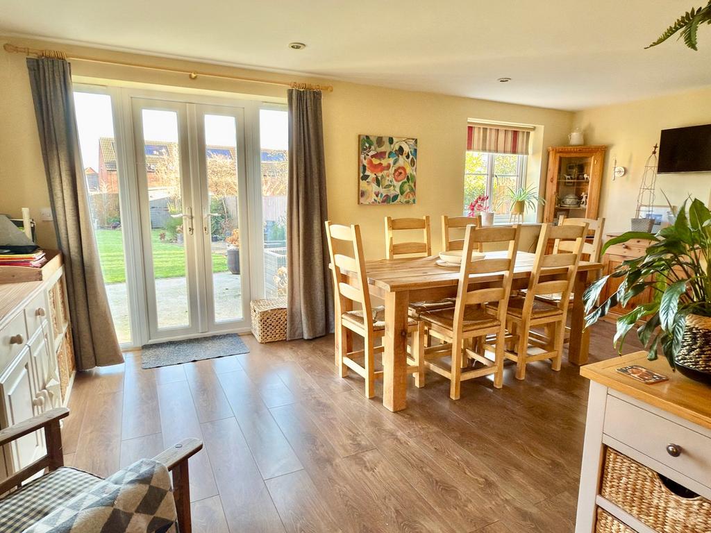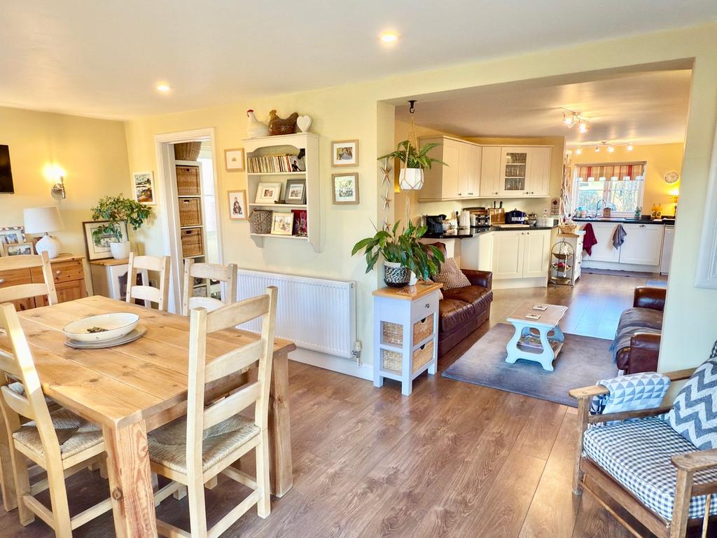 The dining area has patio doors leading out to the garden and a door leading through to a useful utility room with door out to the garden.
