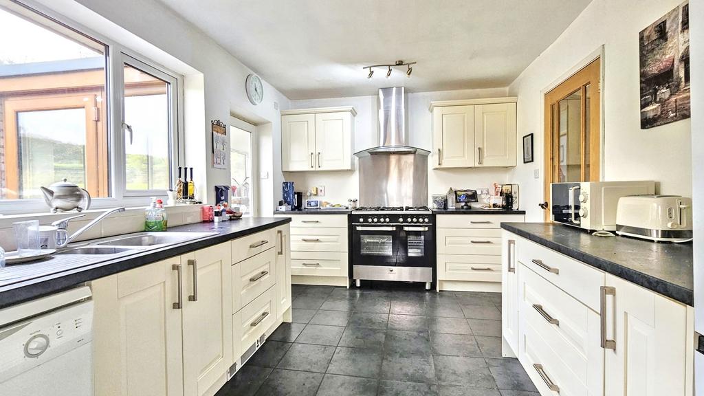 The deceptively spacious accommodation includes; a front porch, reception hall, spacious L-shaped sitting room/dining room, kitchen, utility, three bedrooms, the main one having an en-suite shower room, and a family bath/shower room.