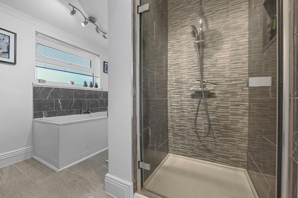 The spacious entrance hall provides access to the reception room, family room, main bedroom and bathroom as well as stairs leading to first floor landing. The stylishly decorated dual aspect reception room is positioned to the front of the house and includes an attractive bay window. Adjacent is the luxurious main bedroom featuring a further bay window, dressing room and contemporary ensuite which comprises of a walk-in shower, low level WC, vanity wash hand basin and ladder style heated chrome towel rail. Additionally there is a super bathroom which comprises of a panel enclosed bath, corner shower cubicle, low level WC, vanity wash hand basin and ladder style heated chrome towel rail.