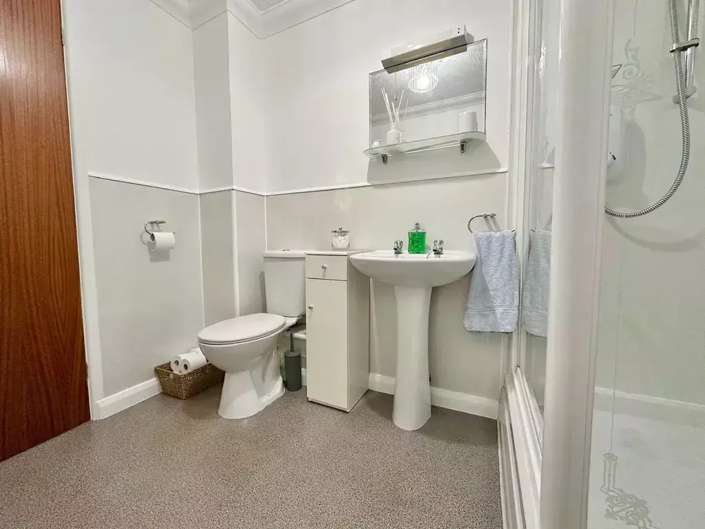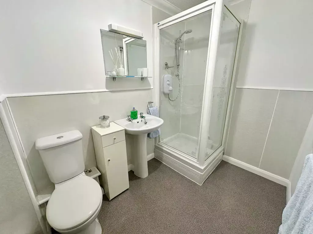 SHOWER ROOM (2.58m x 1.68m):- The shower room is furnished with a WC, wash hand basin, shower cubicle with electric shower, shaver point and light, heated towel rail and an extractor fan.