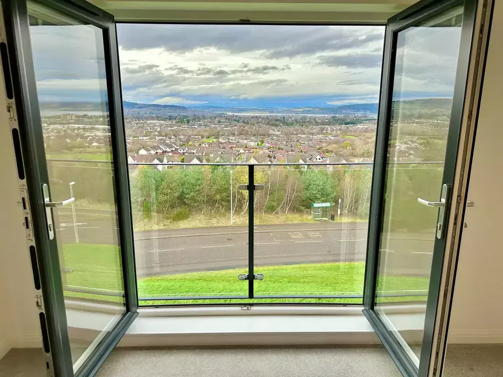 LOUNGE ( 4.37m x 3.85m):- This bright and spacious lounge benefits from a Juliette balcony offering uninterrupted views across Inverness, the Kessock bridge and Moray/Beauly Firth. Access is offered to the kitchen.
