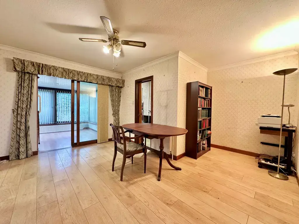 DINING ROOM (4.31m x 4.19m) :- The spacious dining room offers ample space for large dining furniture and is open to the kitchen and offers access to the utility room and the sunroom.