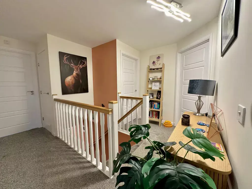 STAIRCASE AND LANDING :- The staircase proceeds to the landing and offers access to four bedrooms, family bathroom, two integrated cupboards and offers access to the loft space via a ceiling hatch.