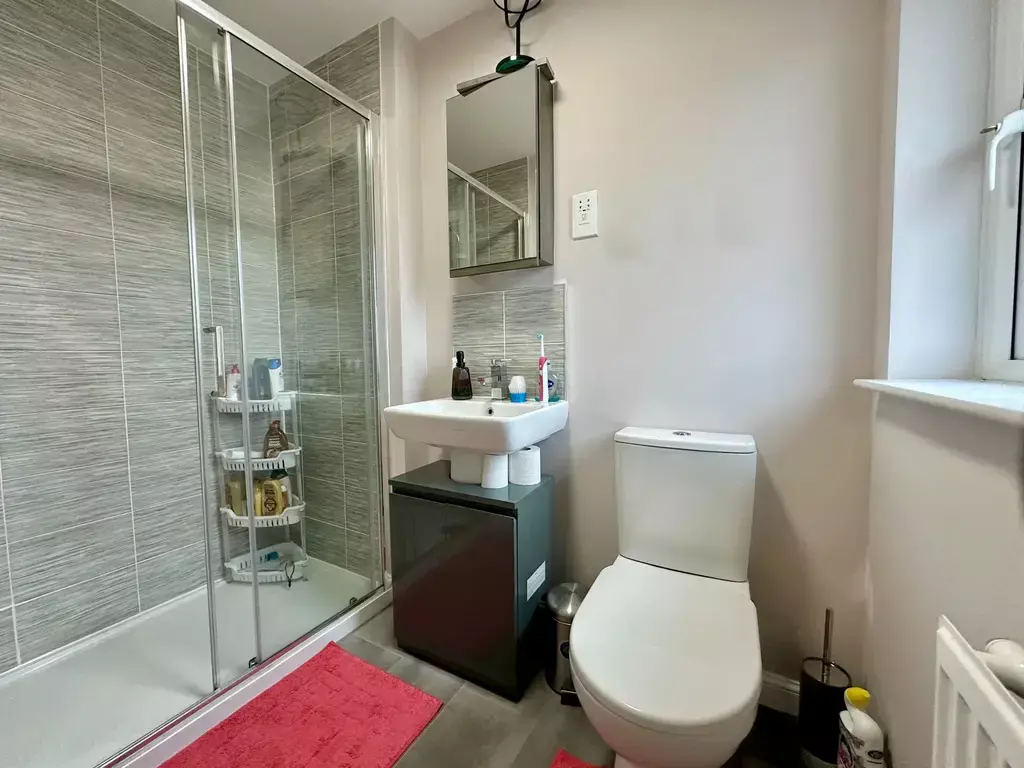 EN-SUITE SHOWER ROOM (2.26m x 1.31m):- The en-suite shower room is furnished with a WC, wash hand basin with fitted cupboard, shower cubicle with an electric shower, wall mounted vanity unit and an extractor fan.