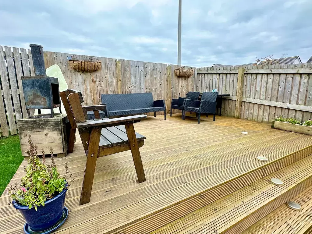 GARDENS:- The front garden offers a tarmac driveway and lawn area. The rear garden is predominantly laid to lawn with a paved patio and a decking area ideal for entertaining.