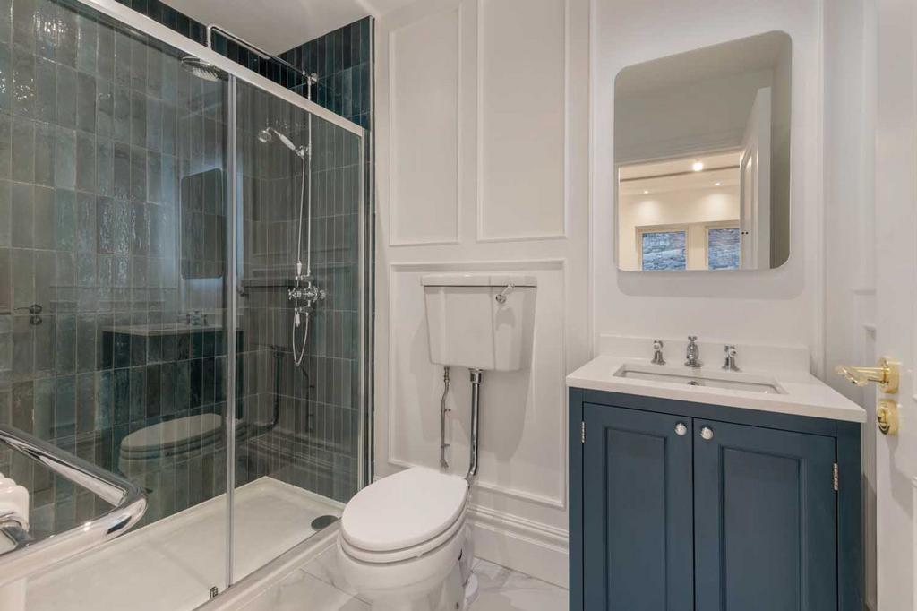 The bathrooms are equally beautifully appointed, featuring high-quality fixtures and a timeless heritage design. With shaker-style paneling on the walls and standout elements include close-coupled Hudson Reed WCs and traditional chrome K-Vit Viktory thermostatic showers. Elegant chrome taps provide the perfect finishing touch. A select few bathrooms boast the addition of stunning Instinct freestanding boat bathtubs.