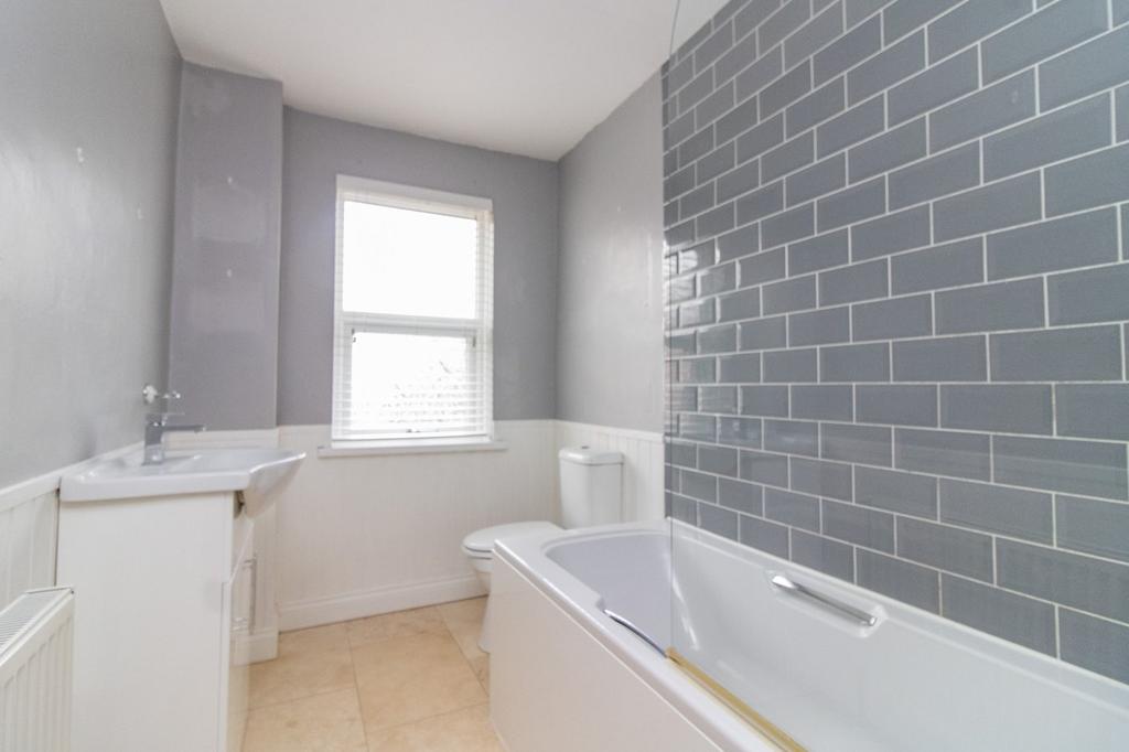 9' 0" x 5' 8" (2.74m x 1.73m) Three piece suite comprising paneled bath with shower over, tiled splash back, Vanity sink unit and low level WC, radiator, UPVC sealed double glazed window.