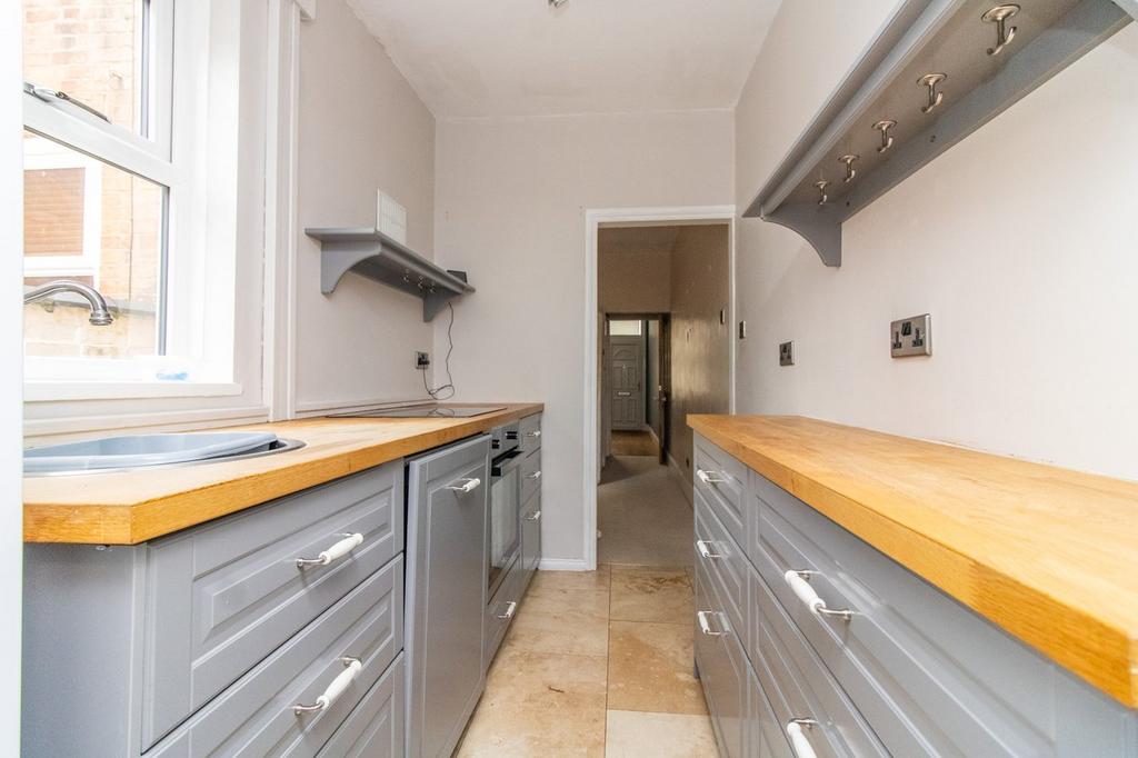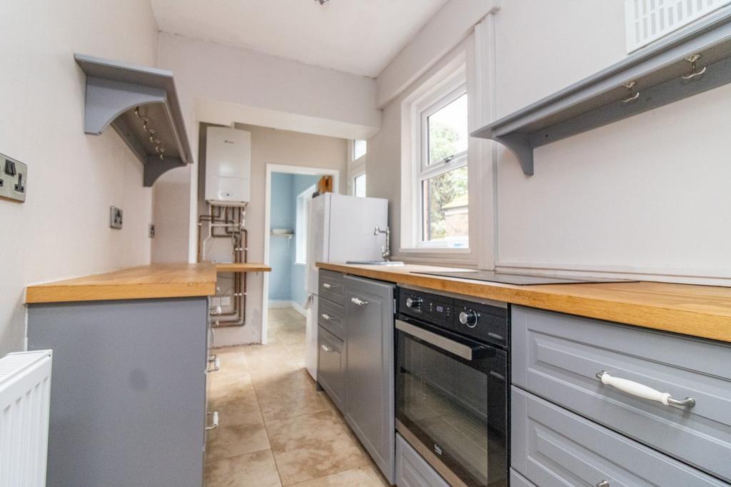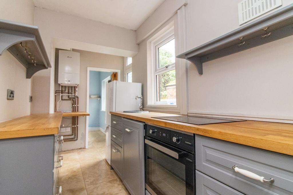 12' 6" x 5' 6" (3.81m x 1.68m) Comprising circular stainless steel sink unit with mixer tap over, matching base units with butcher block work surfaces over, drawers and cupboards under, integrated dishwasher, UPVC sealed double glazed window, wall mounted gas boiler, door to rear garden.