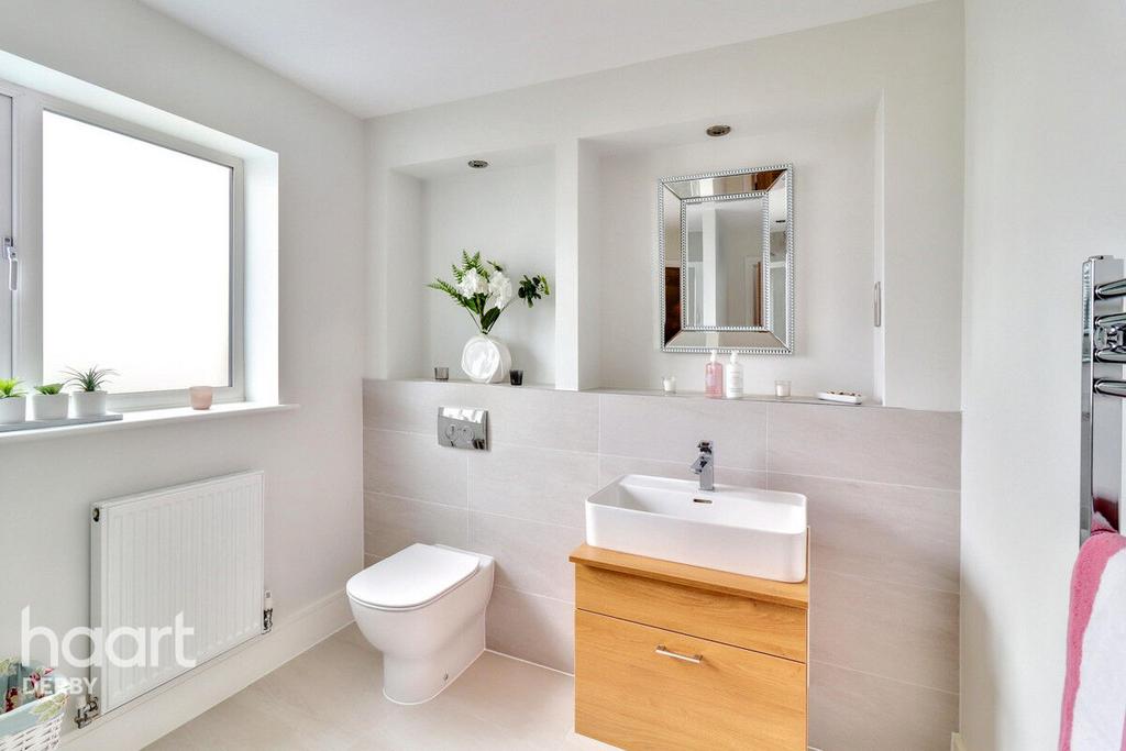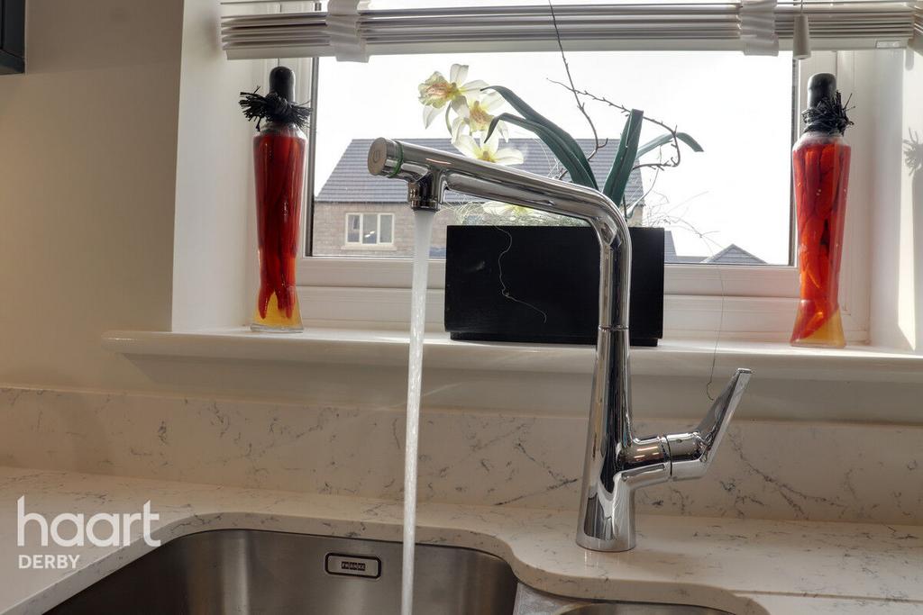 The home’s thoughtful design continues throughout, with standout features like deep skirting and architraves, oak and glass stairs, and high-quality oak veneer doors. The home is equipped with underfloor heating for comfort, and all floor coverings—including Karndean, ceramics, and carpets—are included. You’ll also find Hansgrohe taps and high-end bathroom fittings on all cabinets as standard.