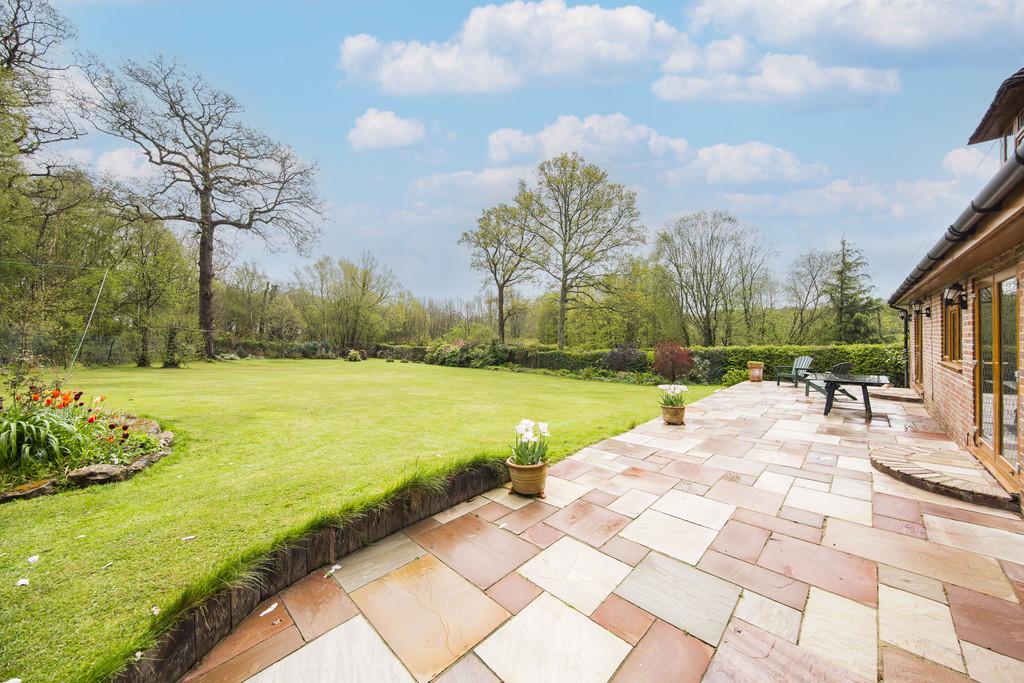 OUTSIDE: The property occupies a plot of approximately 0.5 of an acre (tbv), the majority of which is set to lawn in the form of generous and mostly level gardens with retaining fencing and further areas of retaining hedges. Large raised patio area to the rear of the property and an impressive and peaceful woodland aspect. There are feature rockeries, specimen trees and areas of fruit and vegetable beds to the rear of the garden with hedge boundaries leading to the lane.