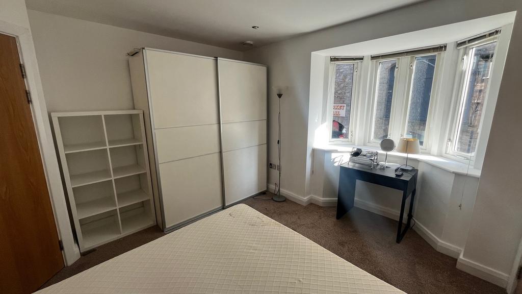 The master bedroom is carpeted and neutrally decorated, complete with a double bed, mattress, and wardrobes. It also benefits from a modern en-suite with a shower cubicle, WC, and pedestal hand wash basin. The second double bedroom is equally well-presented, featuring a double bed, mattress, wardrobes, and a large double-glazed window.