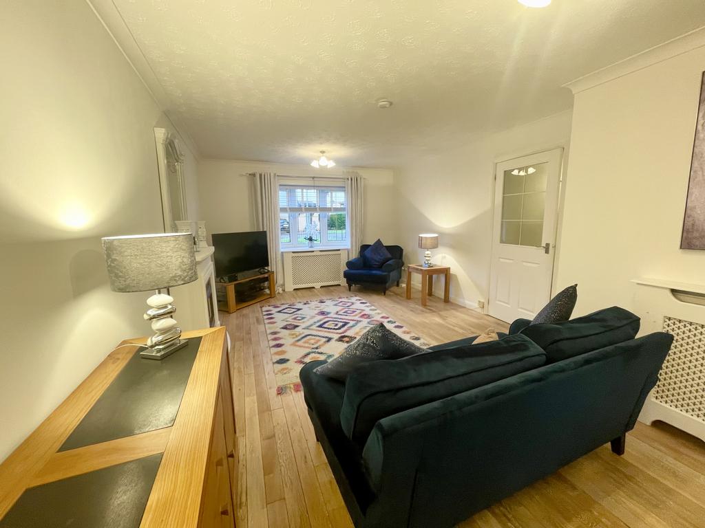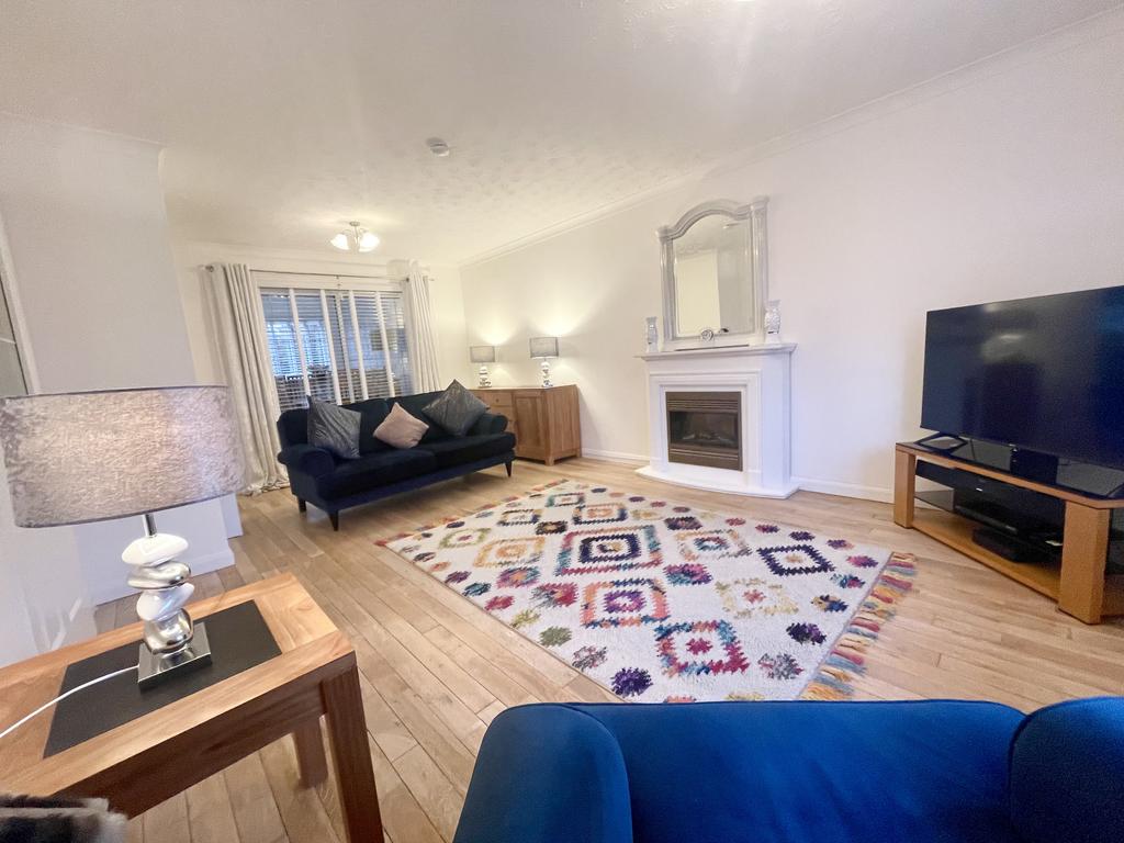 Picture window to front, real wood flooring, feature lighting, gas fire, fireplace and access inner hallway. patio doors accessing dining area / family room.